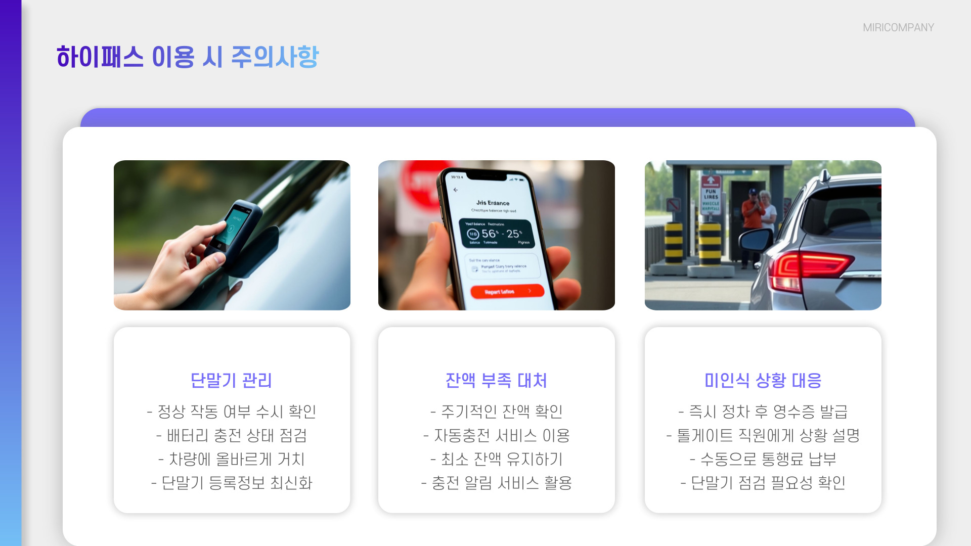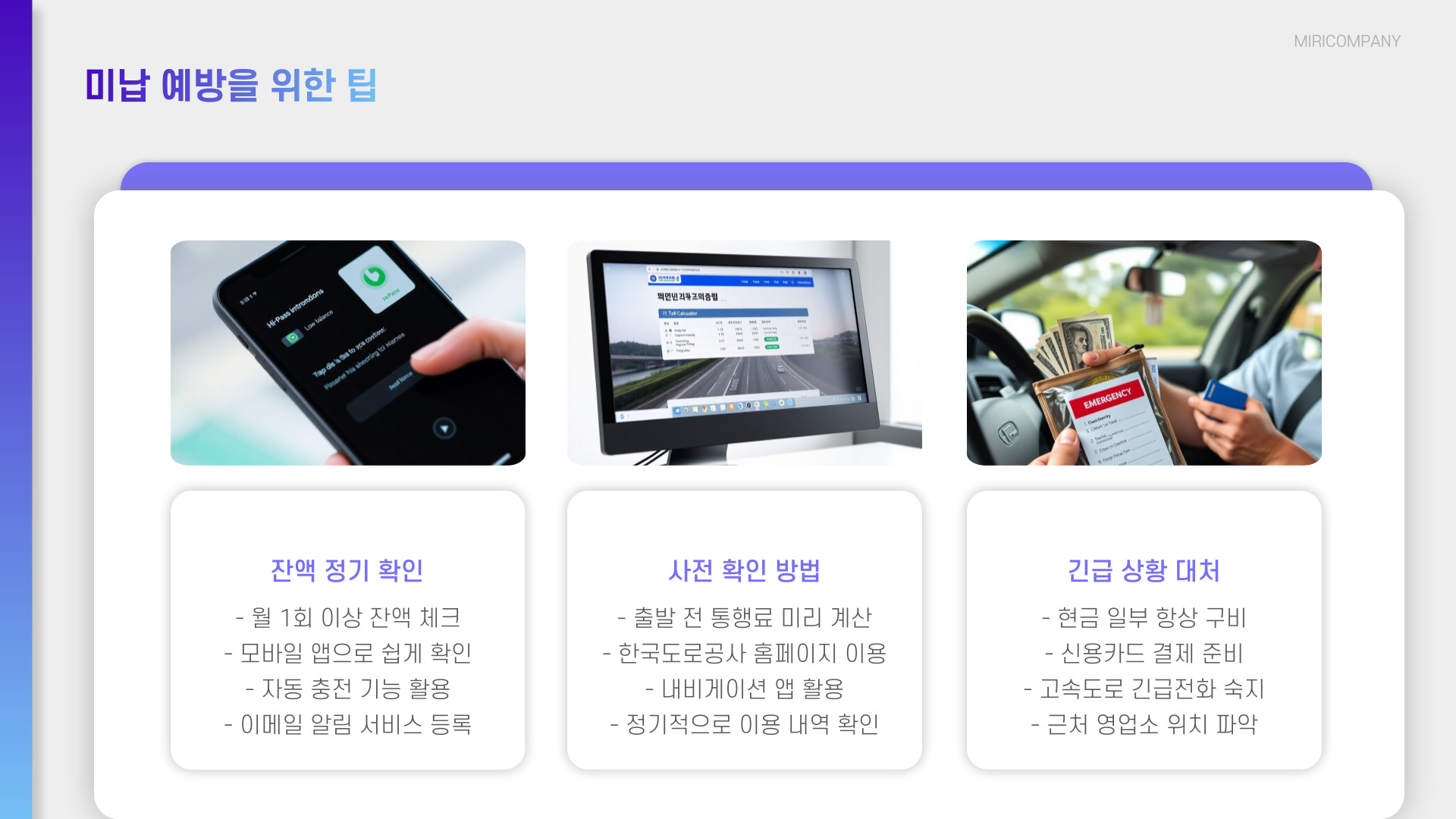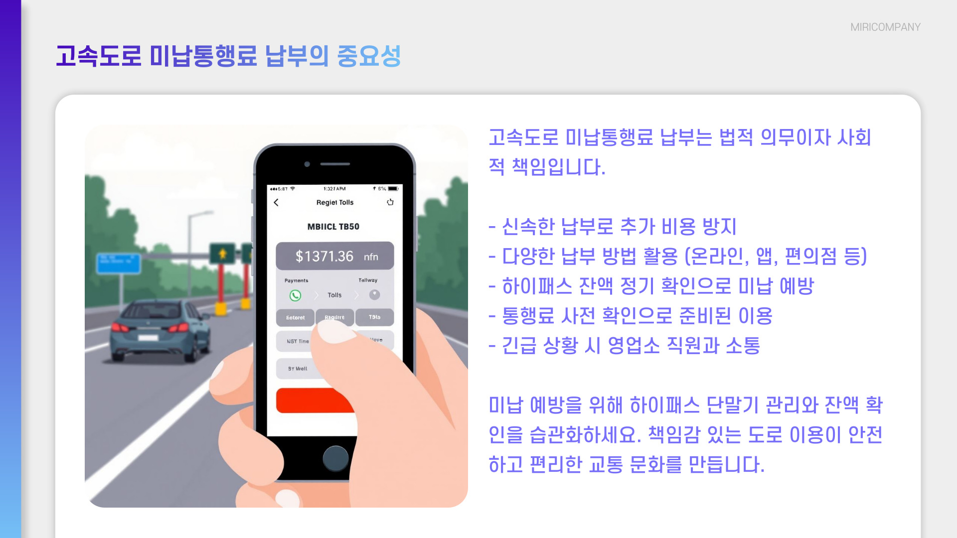 - 미납 내역은 한국도로공사 홈페이지 또는 고객센터에서 확인할 수 있습니다.