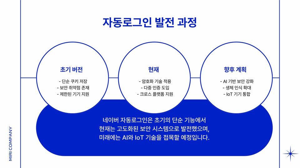 네이버 자동로그인은 사용자에게 여러 가지 유익을 제공합니다. 첫째, 시간 절약입니다. 매번 로그인 정보를 입력하지 않아도 되므로, 필요한 정보에 더 빠르게 접근할 수 있습니다. 둘째로, 편리함입니다. 사용자는 비밀번호를 기억할 필요 없이 간편하게 서비스를 이용할 수 있습니다. 셋째, 보안 기능이 강화되어, 사용자가 개인 정보를 안전하게 관리할 수 있습니다.