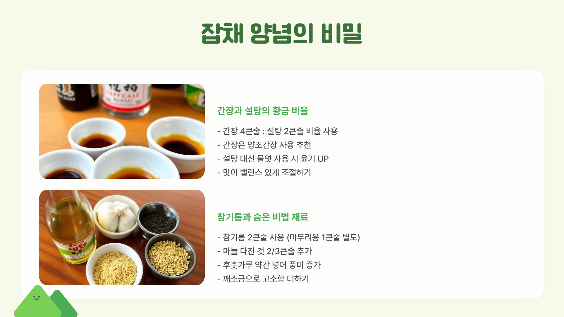 - 잡채는 다양한 반찬과 함께 즐기면 좋다.