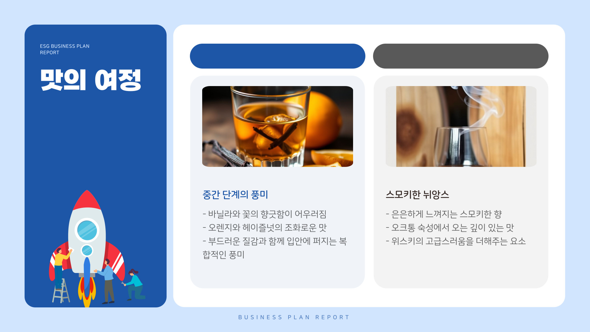 - 맛의 특징: 감귤, 오렌지, 서양 배, 스모키함과 스파이시함