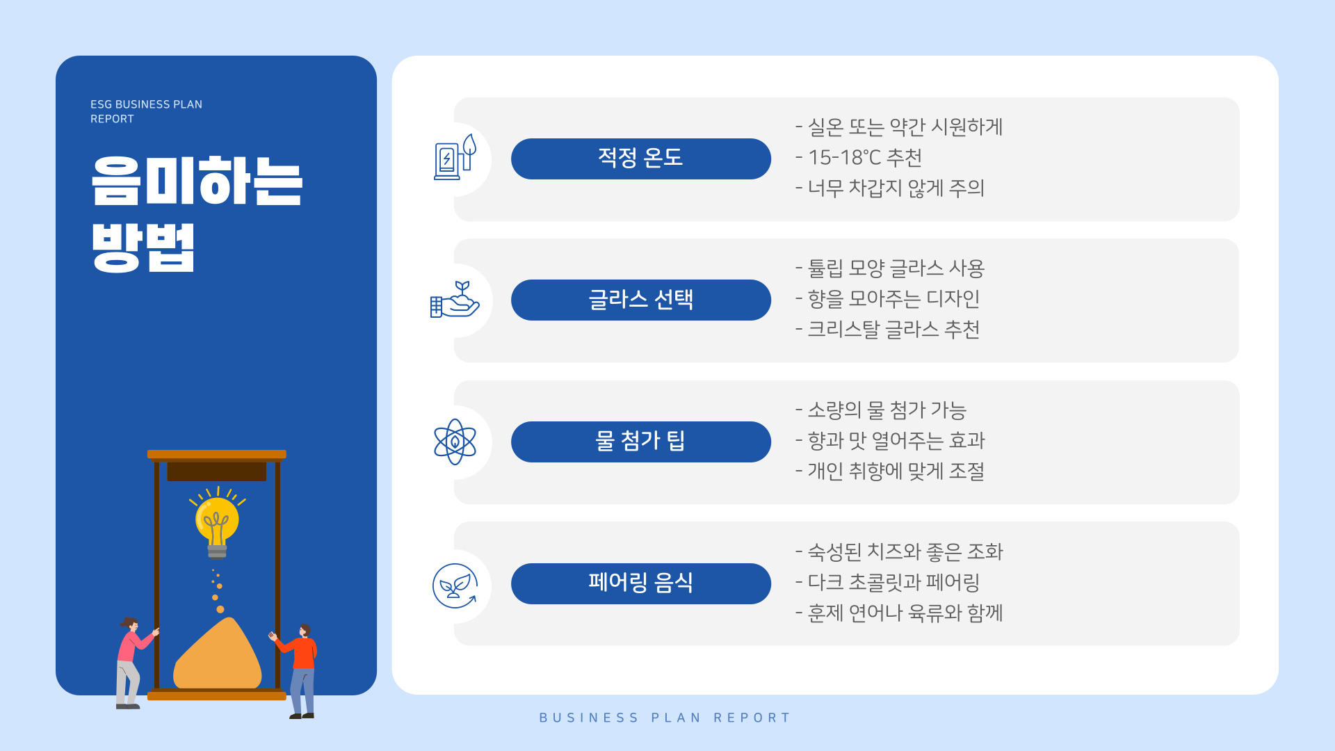 - 온더락 또는 약간의 물과 함께 즐기는 것이 추천됩니다.