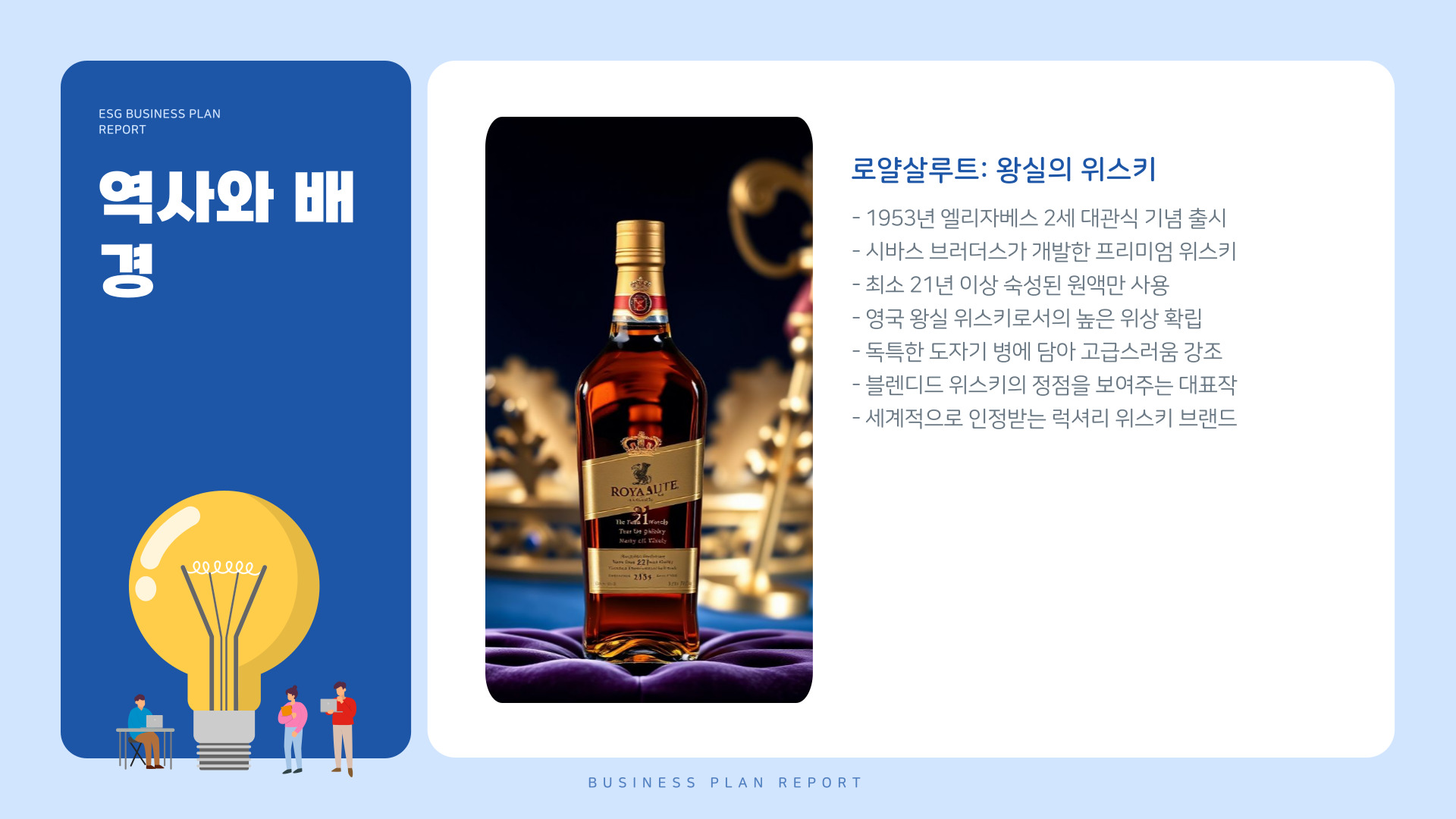 로얄살루트 21은 1953년 엘리자베스 2세의 즉위식에 맞춰 특별히 제작된 위스키입니다. 이 위스키의 제작 과정은 단순한 제조를 넘어서, 역사적 의미를 지니고 있습니다. 로얄살루트라는 이름은 왕실을 기념하기 위해 붙여졌으며, 이는 고급스러운 이미지와 함께 제품의 품질을 더욱 높여주는 요소로 작용합니다. 역사적인 배경은 위스키의 브랜드 가치와 소비자에게 전달되는 메시지에 중요한 역할을 합니다.