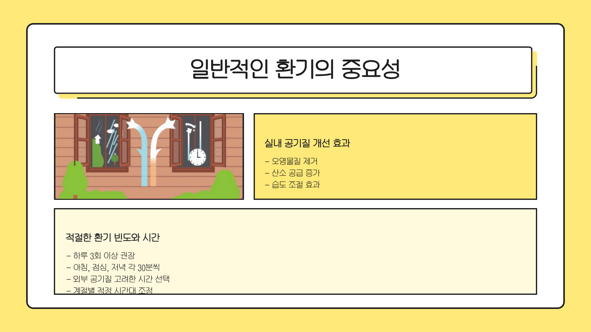 - 효과적인 환기를 위해 창문을 대각선으로 여는 것이 좋음
