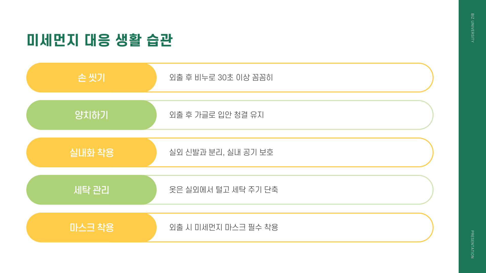 위의 다섯 가지 비법을 통해 미세먼지 심한 날에도 안전하고 효과적으로 환기를 관리할 수 있습니다. 미세먼지로부터 건강을 지키기 위해 꾸준한 관리가 필요합니다.