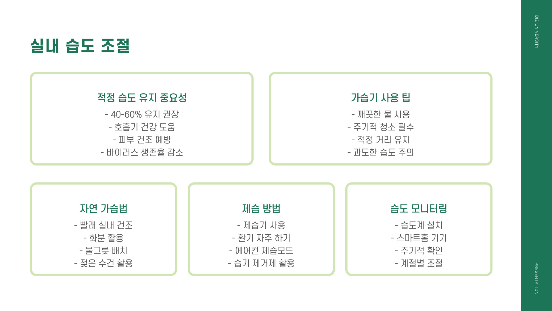 - 전략적으로 환기 시간을 정하여 실내 공기를 신선하게 유지하세요.