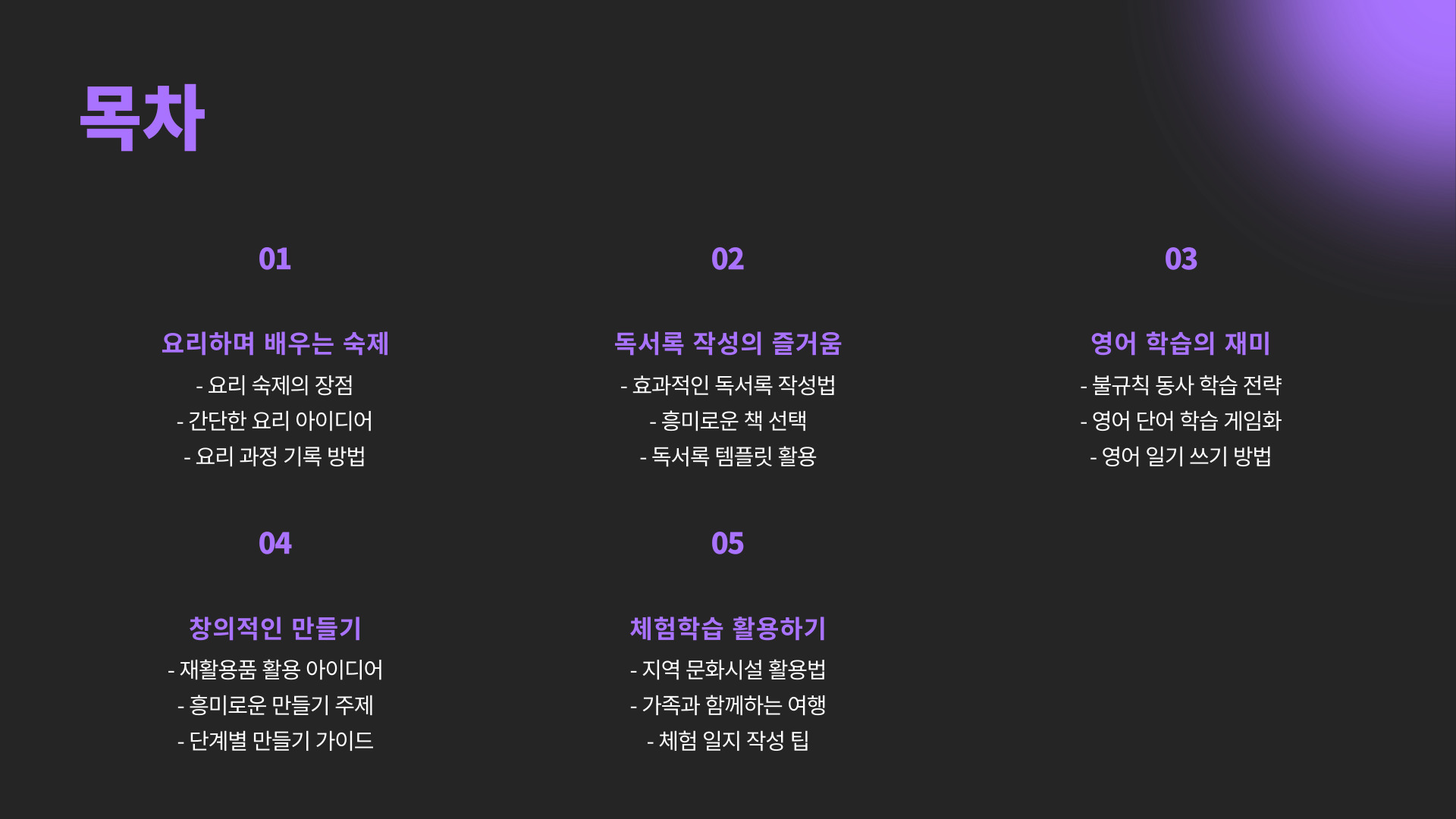 - 일정을 정해 체계적으로 진행하세요.
