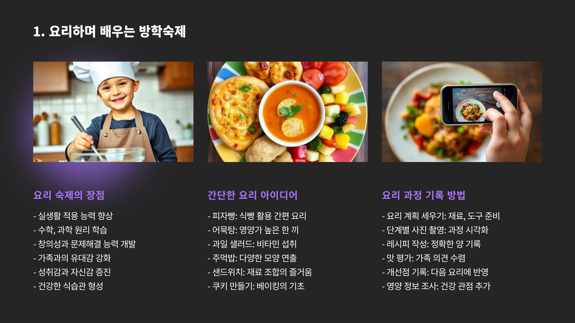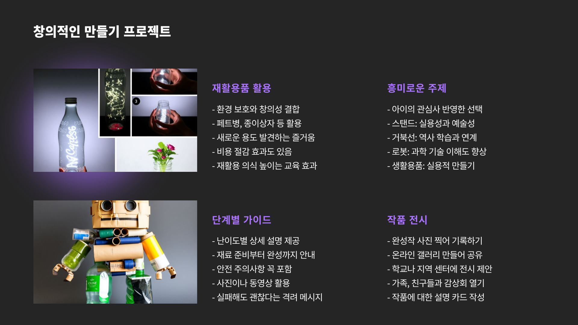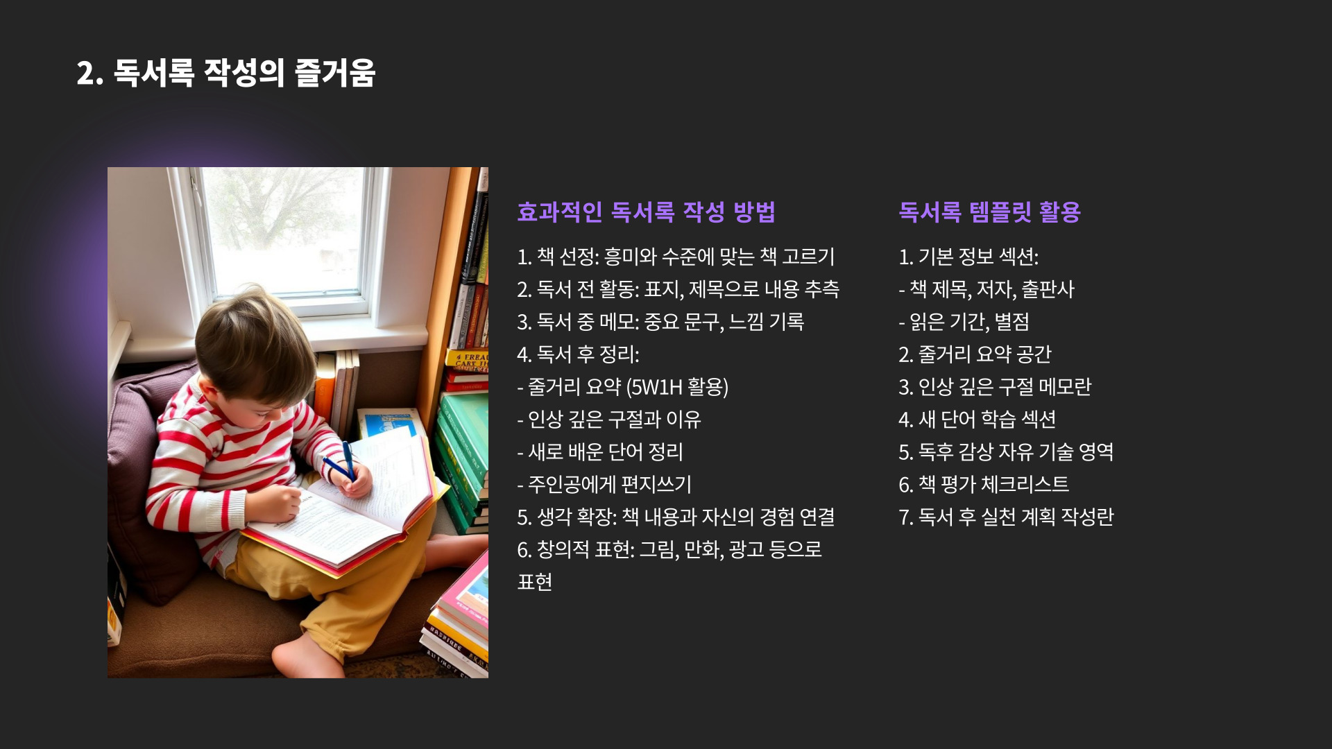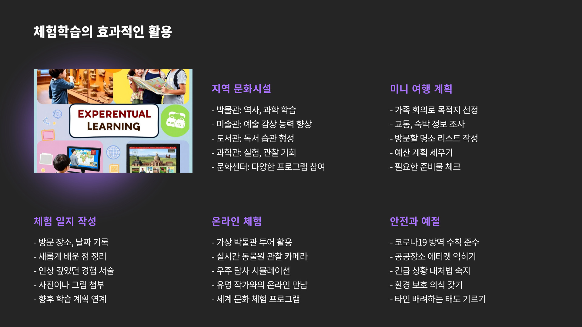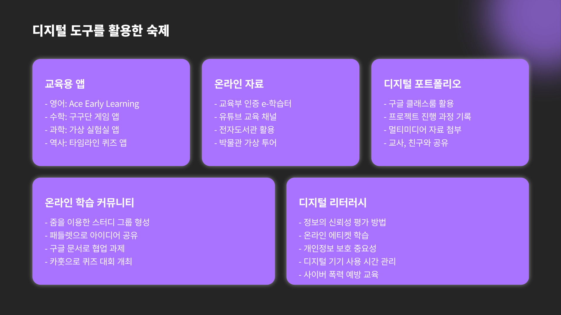- 다양한 출처 활용: 동영상, 책, 자료 검색