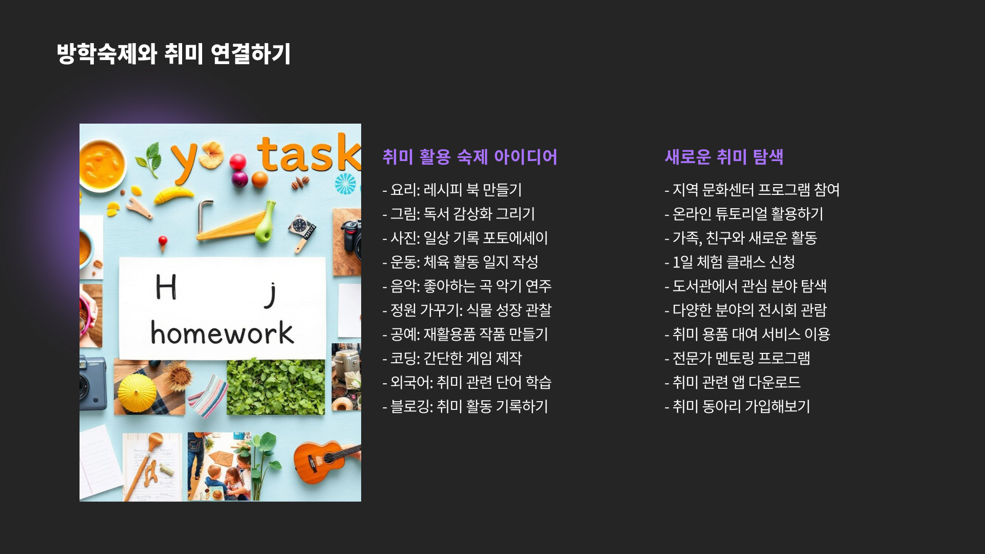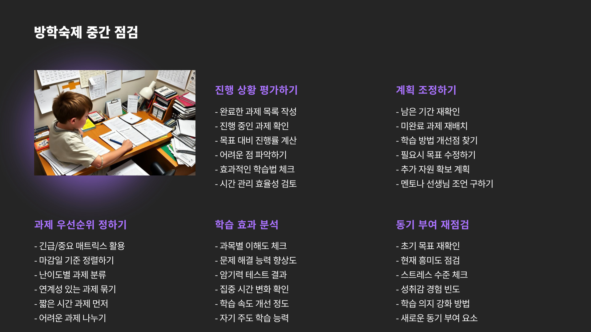 Tags: 방학숙제, 학습 비법, 계획 세우기, 환경 조성, 공부 습관, 친구와 공부, 보상 시스템, 교육, 학생, 방학 활용