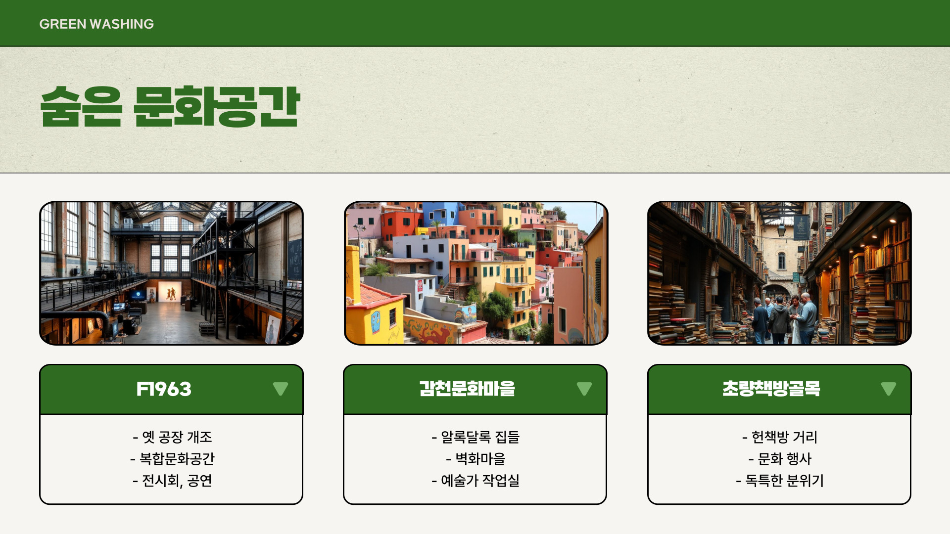 - 문화 행사와 전시가 열리는 다양한 공간 위치