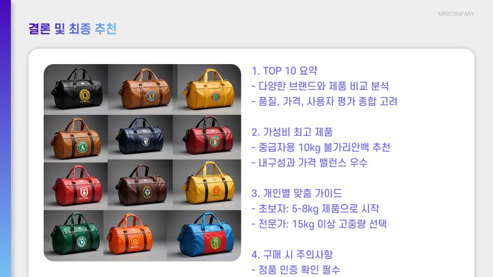 불가리안백은 효과적인 운동을 위한 훌륭한 도구이며, 다양한 제품군을 통해 개인의 필요에 맞는 선택이 가능합니다. 본 포스트에서 소개한 TOP 10 제품과 가성비 분석을 바탕으로 여러분의 운동 목표에 맞는 최적의 불가리안백을 찾으시길 바랍니다. 운동의 시작은 올바른 도구에서부터 시작됩니다!