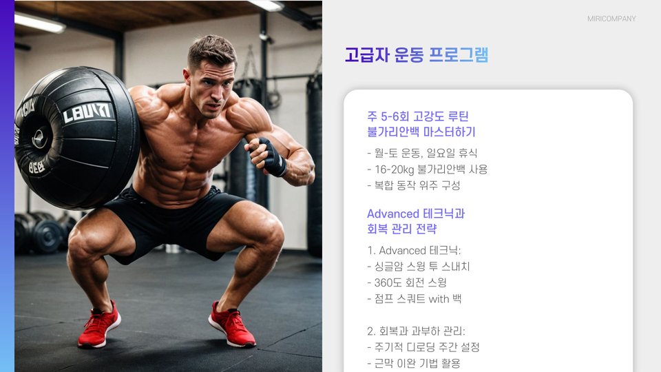 주의사항: 불가리안백을 사용할 때에는 항상 적절한 기술과 자세로 운동해야 부상을 방지할 수 있습니다.