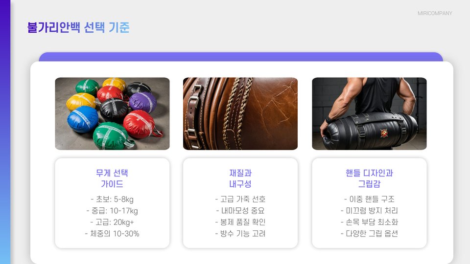 불가리안백을 선택할 때는 개인의 체력 수준과 운동 목적에 맞는 제품을 선택하는 것이 핵심입니다. 운동을 지속적으로 진행하다 보면 몸의 변화가 느껴지며, 훈련의 몰입도가 높아질 것입니다. 건강한 몸과 탄탄한 근육을 위해 최적의 불가리안백을 선택하여 목표를 이루시길 바랍니다!