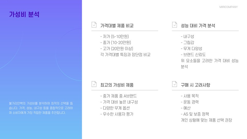 - 가성비를 고려한 제품 선택이 중요
