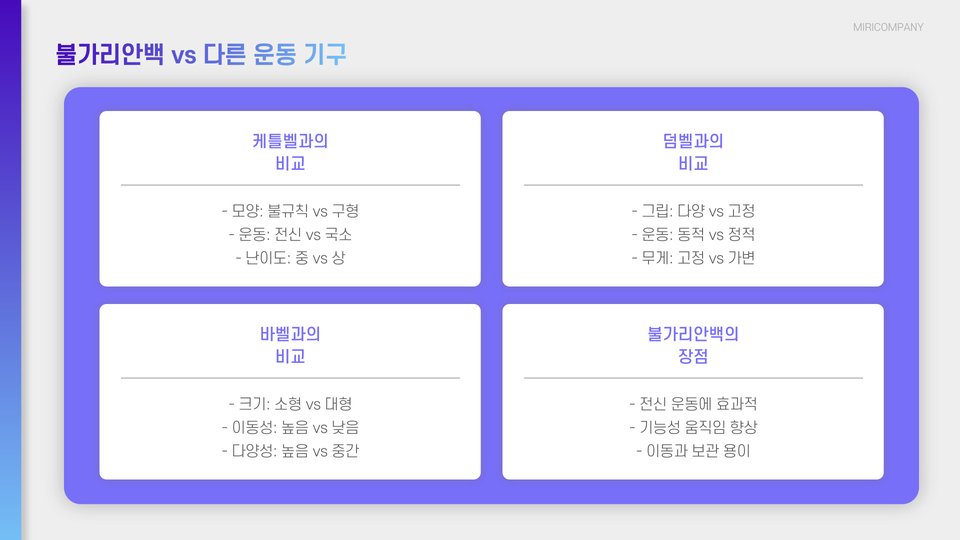 - 불가리안백은 다양한 운동에 활용 가능