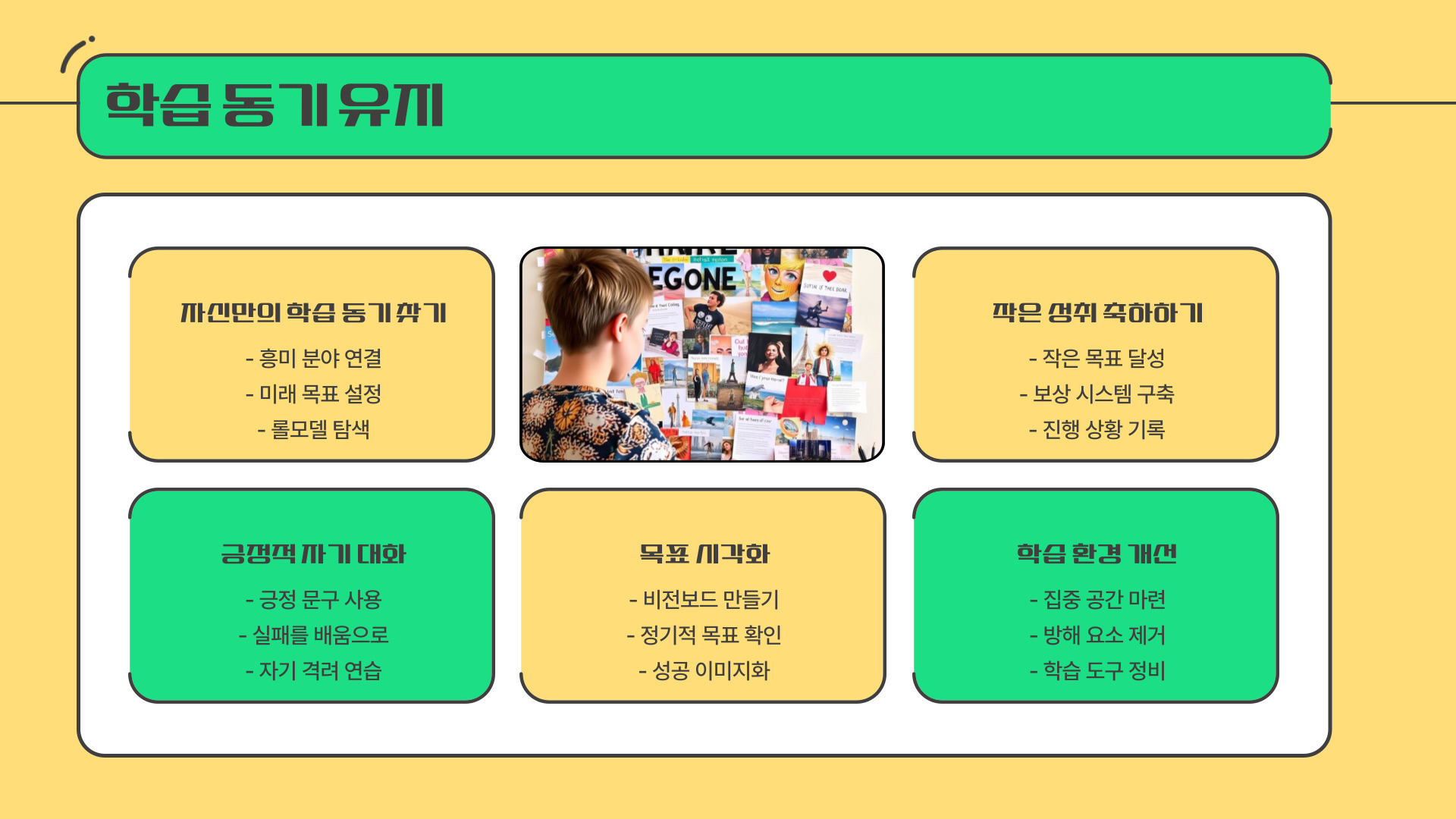 자신의 학습 스타일을 파악한 후에는 이를 기반으로 학습 계획을 세워보세요. 효율적으로 공부할 수 있는 방법을 찾아내면 성적 향상에 큰 도움이 됩니다.