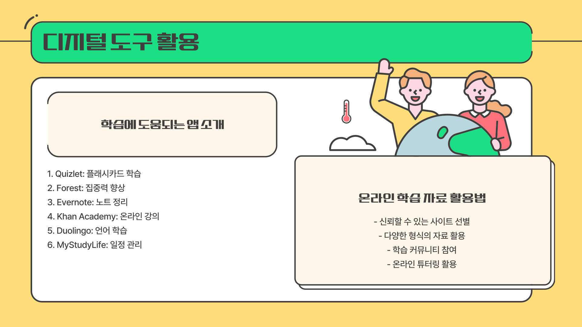 - 자신에게 맞는 공부 방법을 찾아보자.