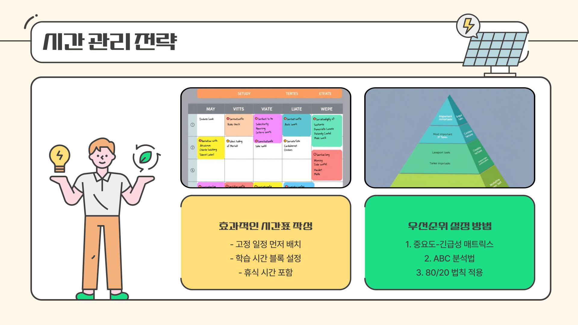 이렇게 계획을 세우면 학기 중 스트레스를 줄이고, 목표를 달성하는 데 큰 도움이 됩니다. 정기적으로 계획을 점검하고 수정하는 과정도 중요합니다. 이를 통해 변화하는 상황에 맞춰 유연하게 대처할 수 있습니다.