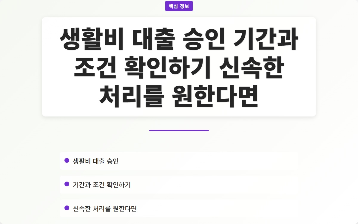 - 생활비 대출 승인 기간은 통상 1일에서 3일.