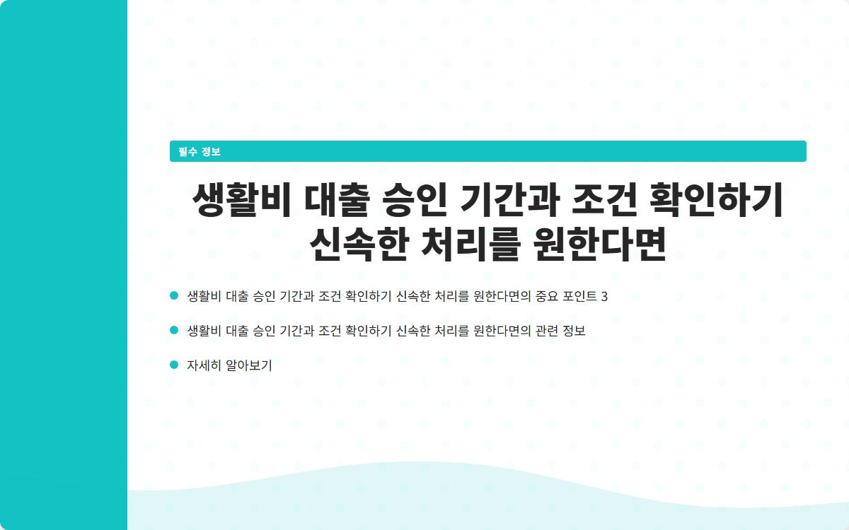 - 생활비 대출 승인 기간은 통상 1일에서 3일.