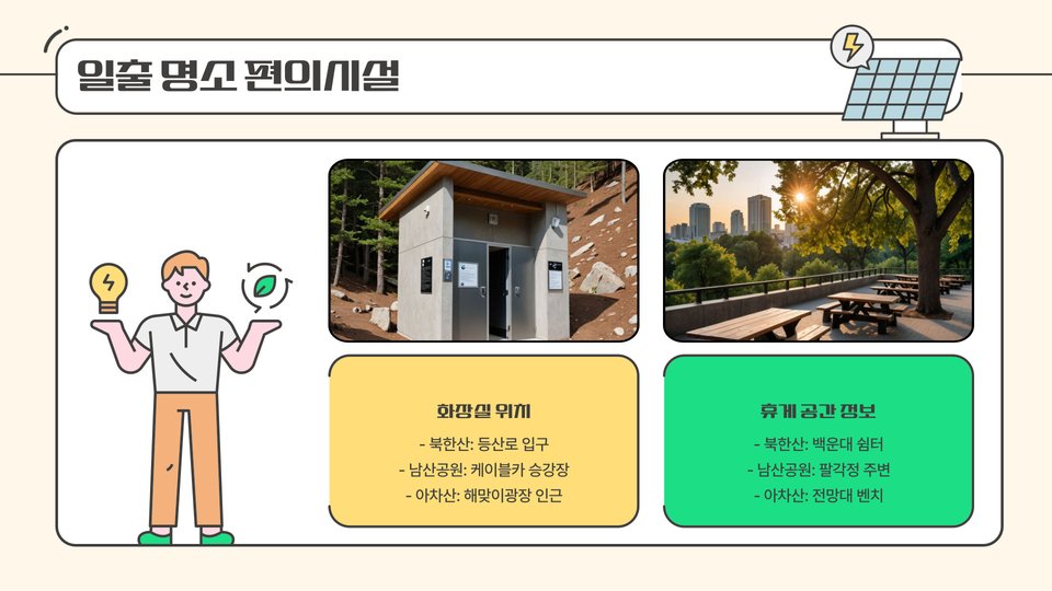 - 남산: 현대적 경관 속에서 일출 관람