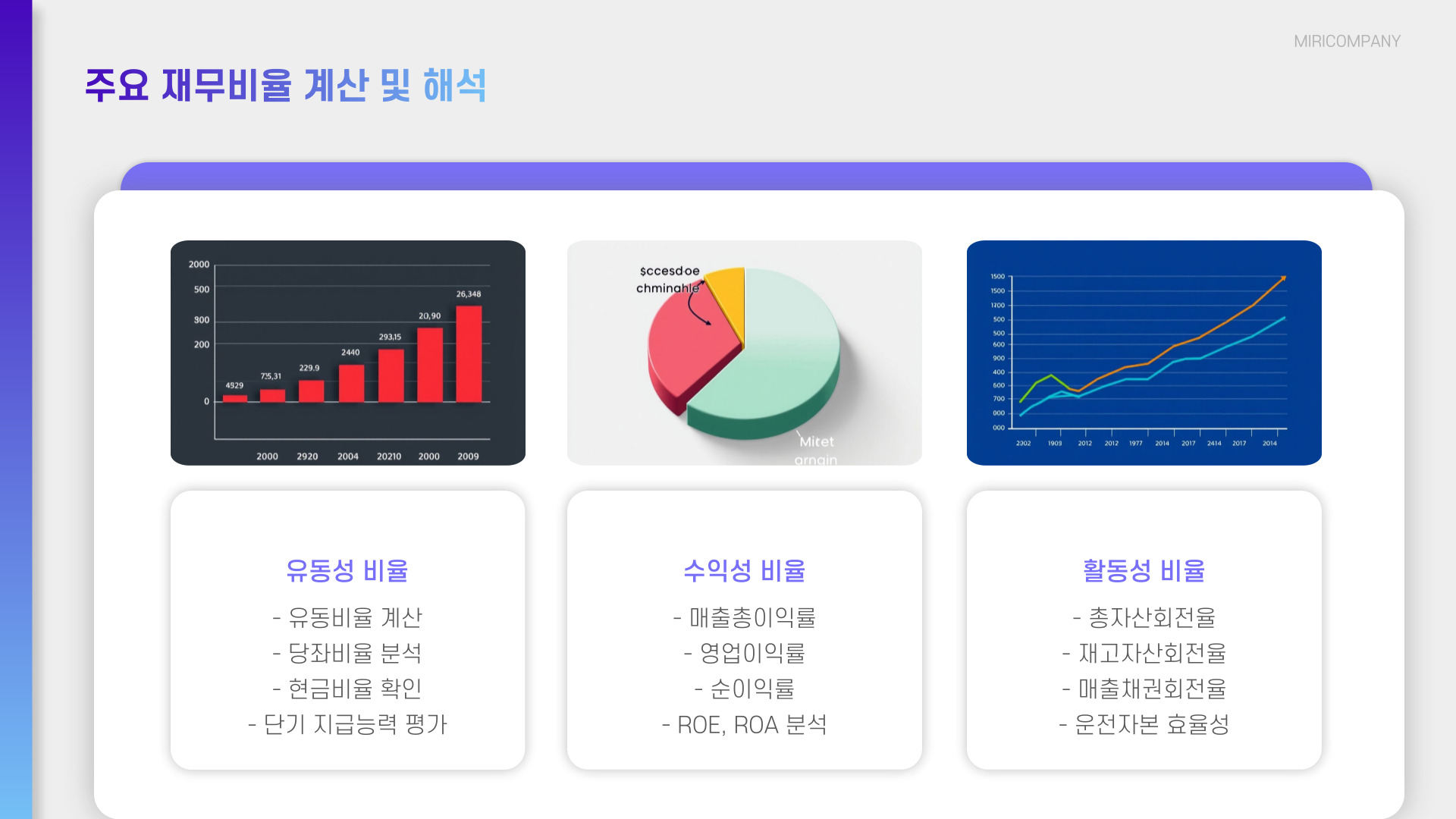 - 항목별 비율 분석을 통해 기업의 재무 상태를 평가합니다.