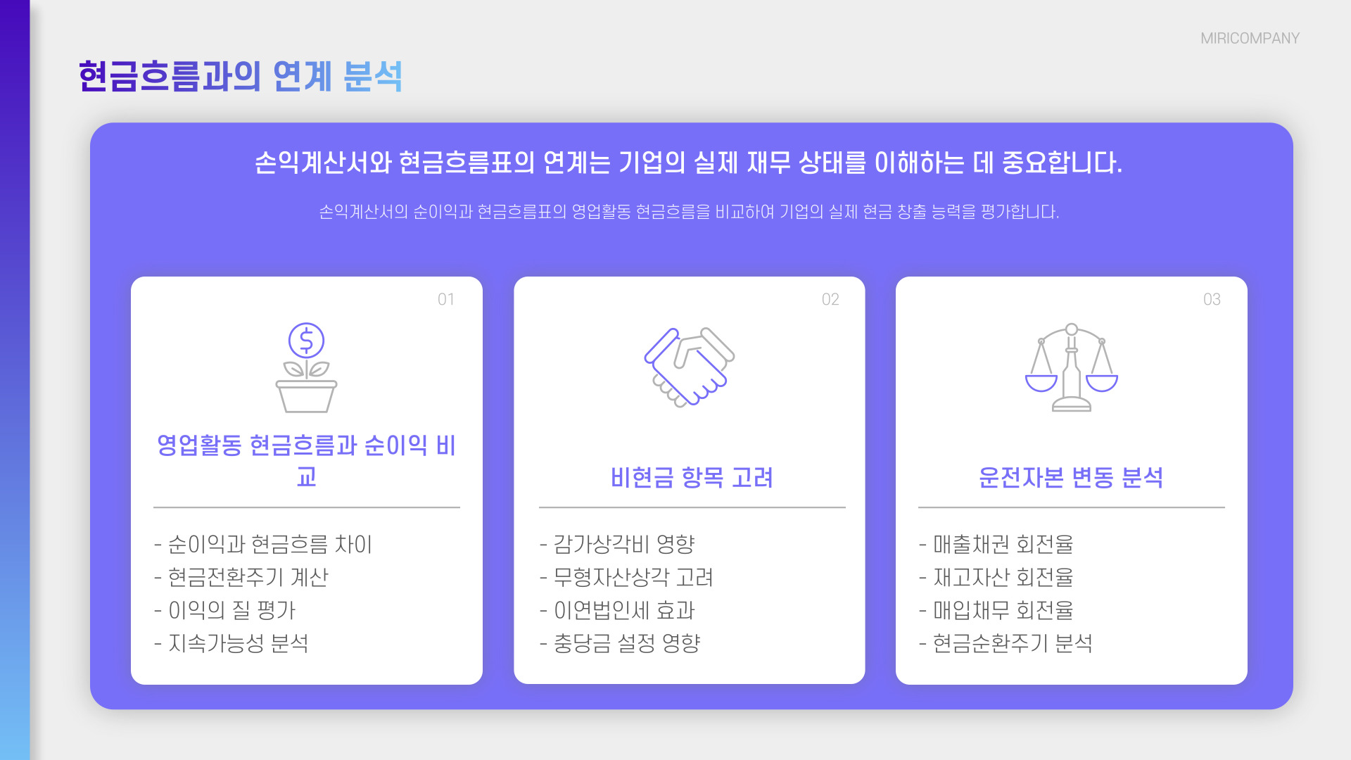 - 다른 재무제표와 함께 분석하여 종합적 이해