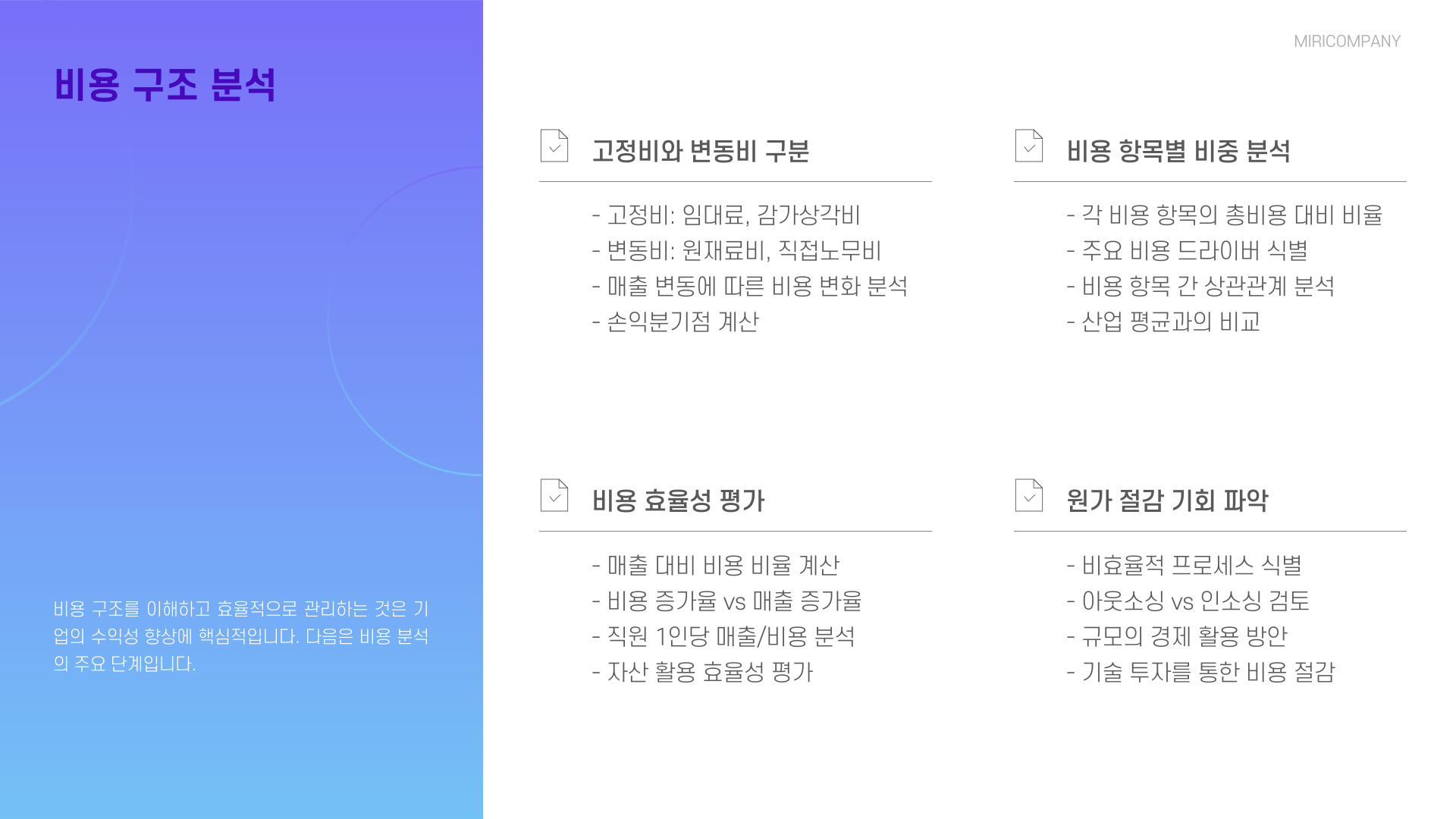 - 비용 감소 추세: 경영 효율성 증대