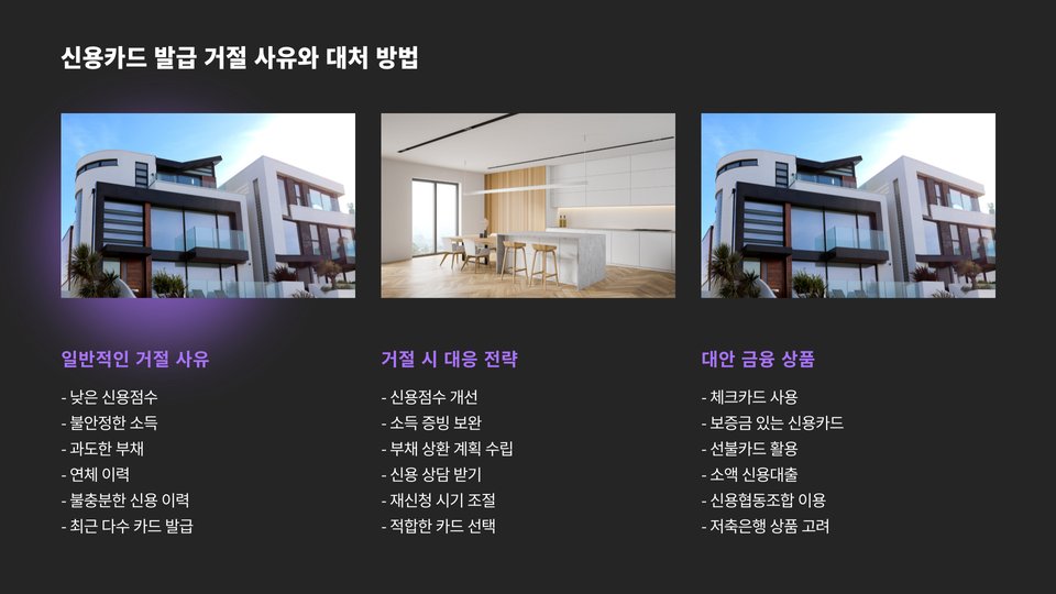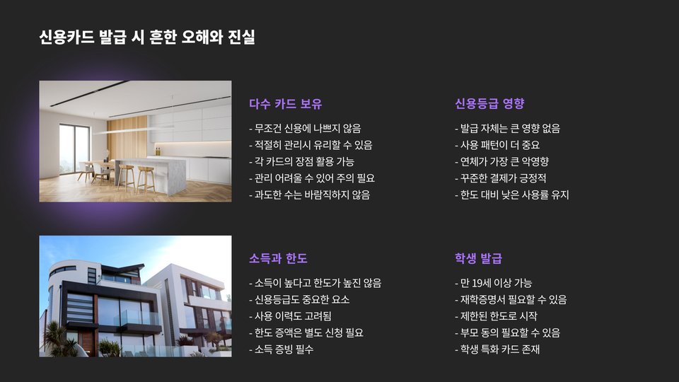 또한, 카드사에 따라 온라인 신청 및 오프라인 신청이 가능합니다. 온라인 신청은 빠르고 간편하지만, 신용 점수가 잘 반영되지 않거나 부정확할 수 있으므로 주의해야 합니다.