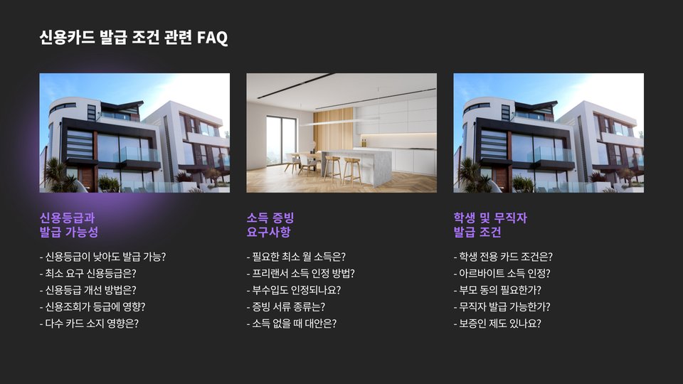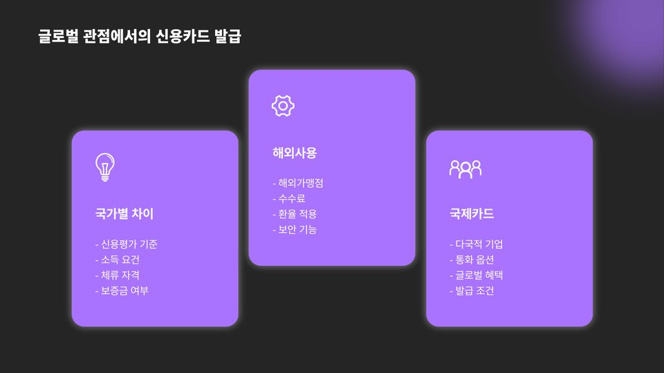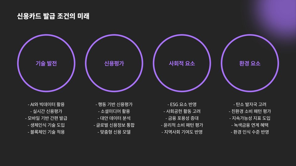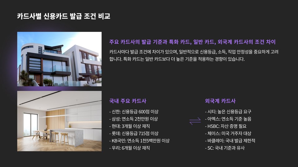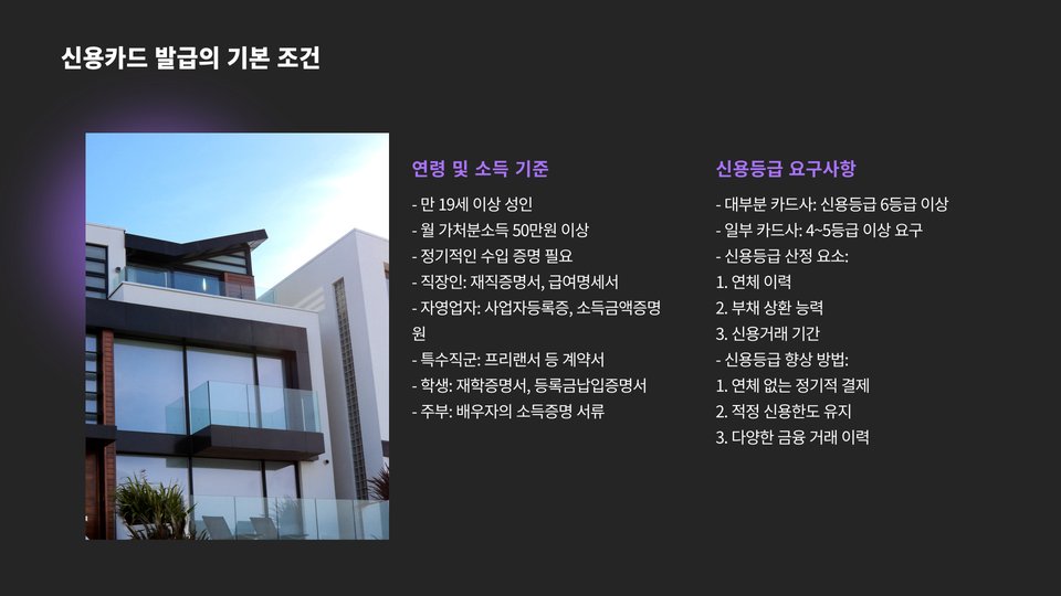 - 신용도 및 소득 수준이 발급조건에 중요한 역할을 합니다.