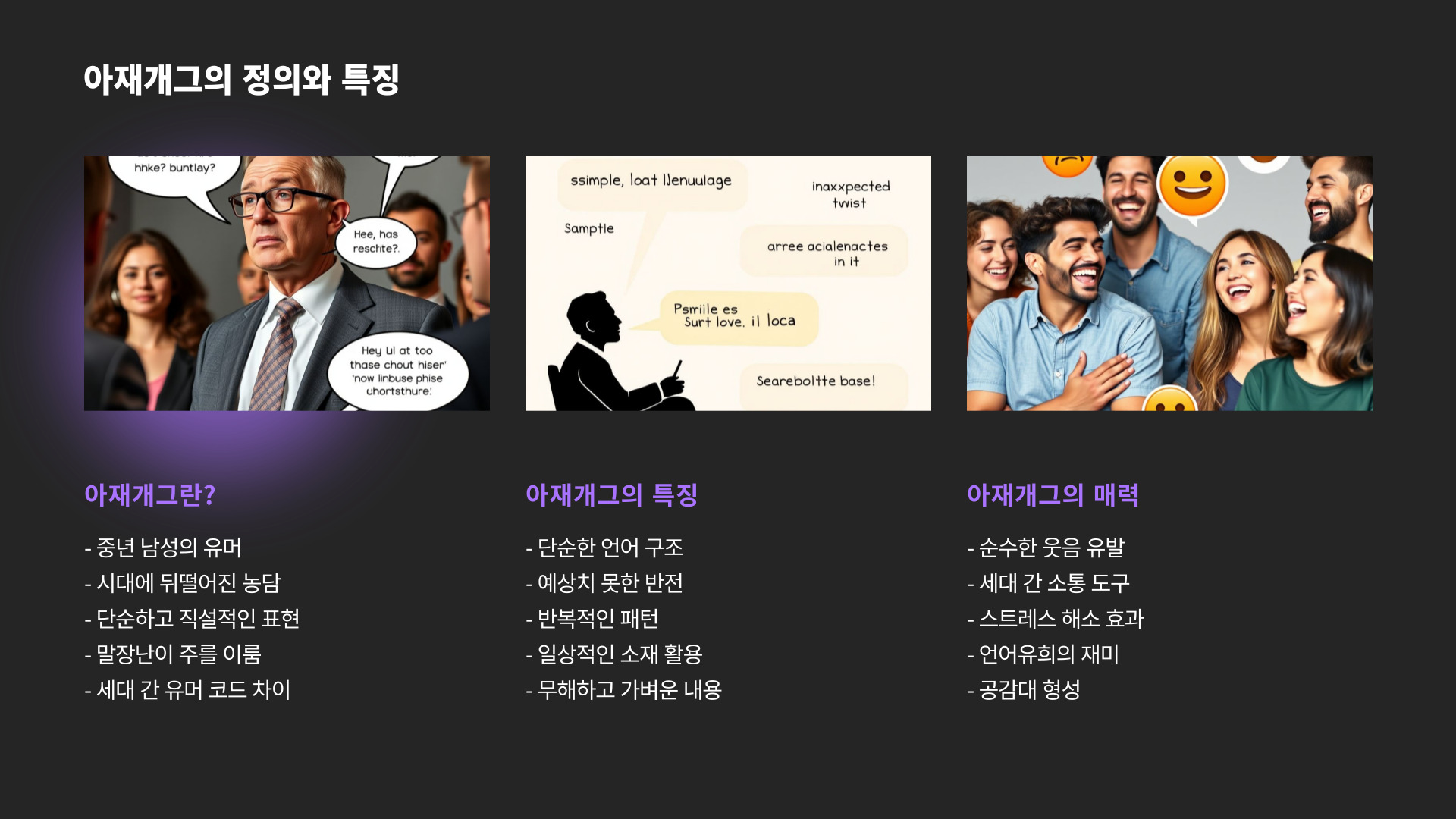 • 아재개그는 연령에 상관없이 즐길 수 있는 유머입니다.