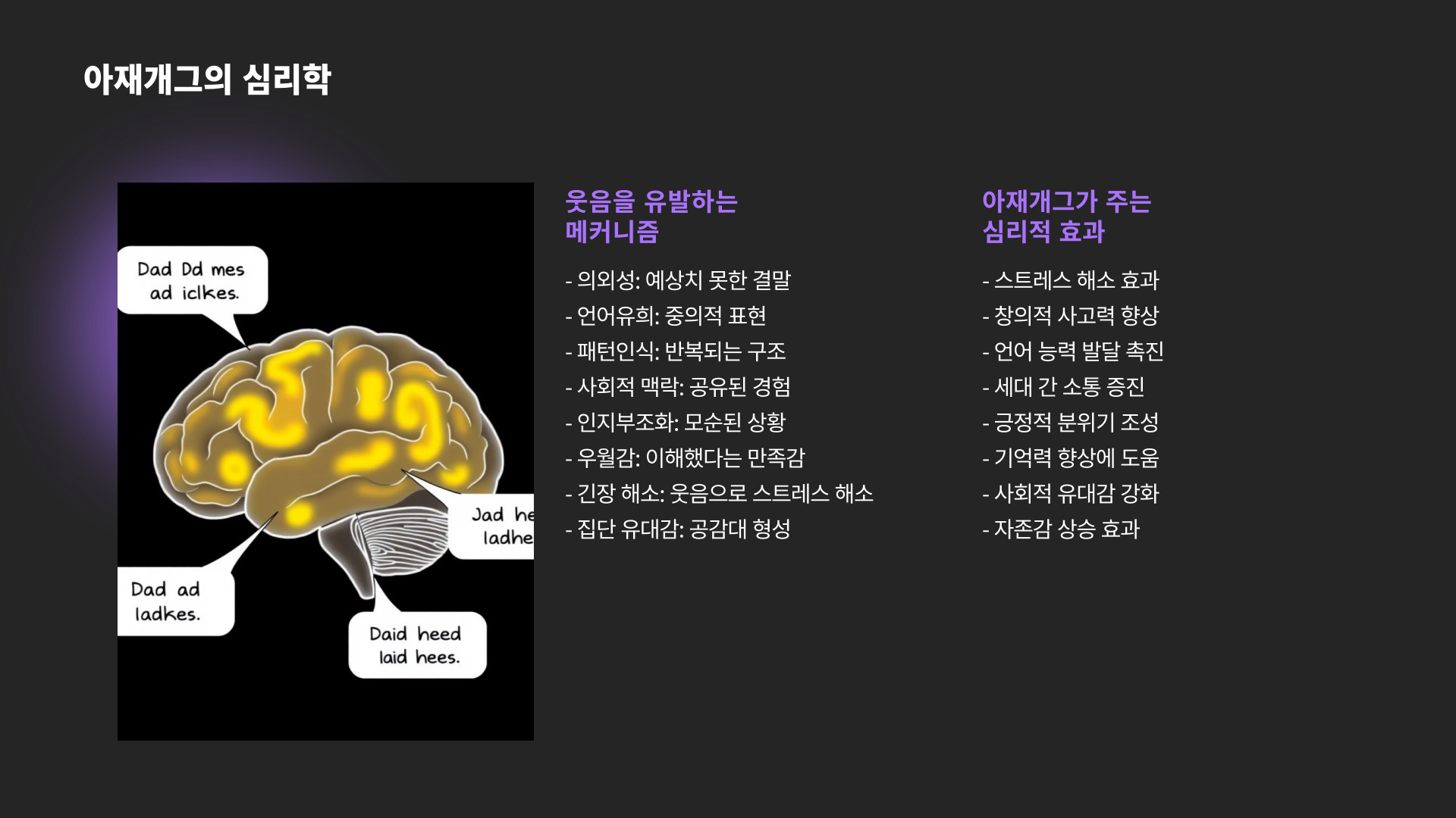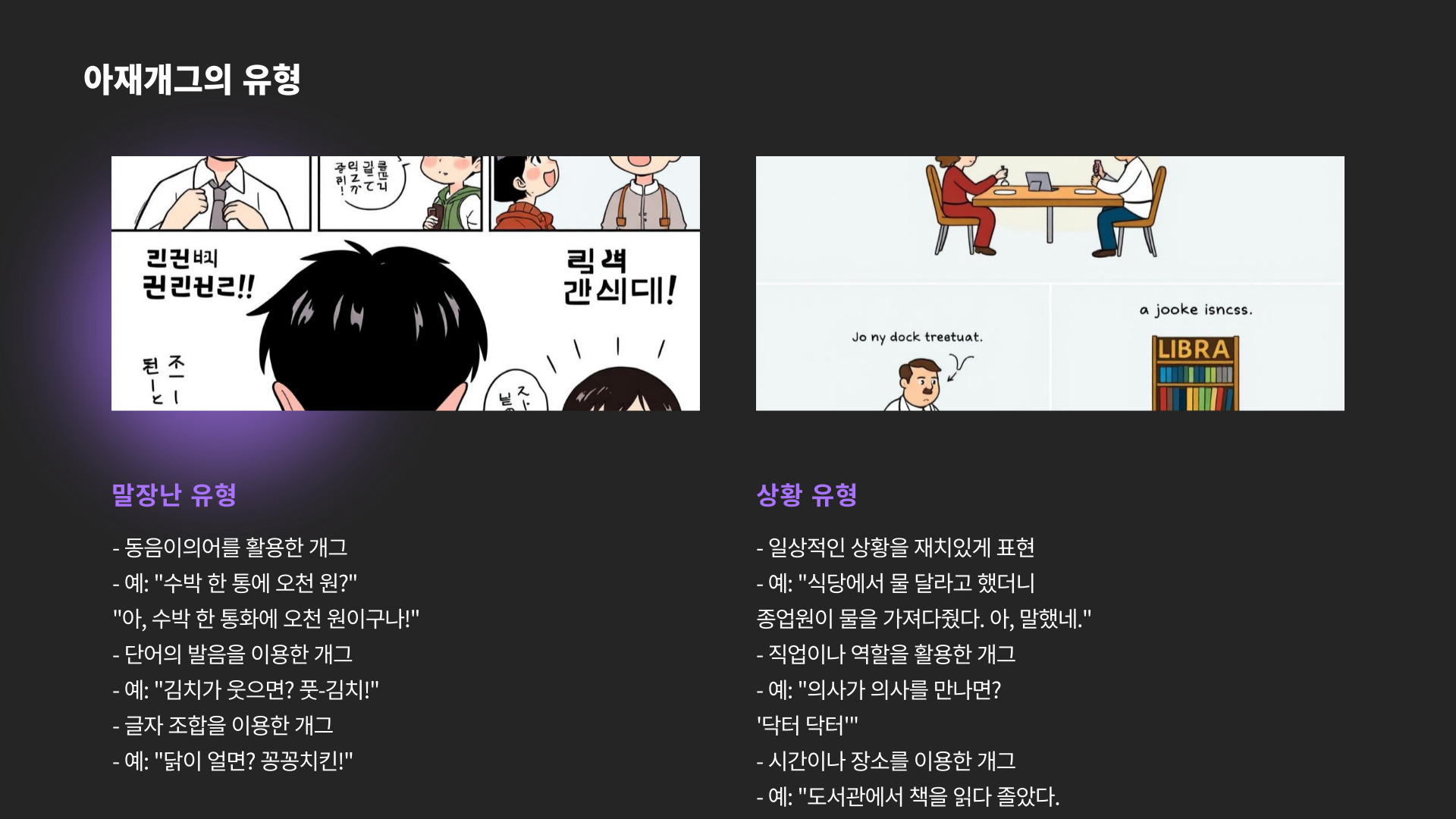 • 아재개그는 연령에 상관없이 즐길 수 있는 유머입니다.