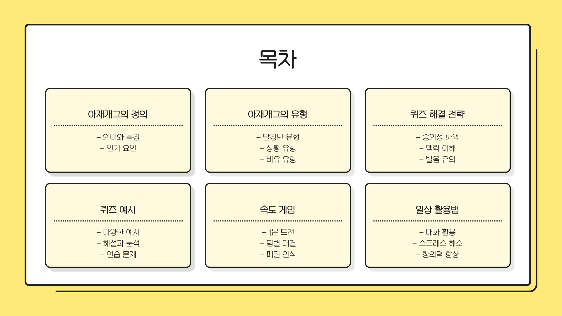 아재개그 퀴즈: 10분에 해결하는 유머의 세계