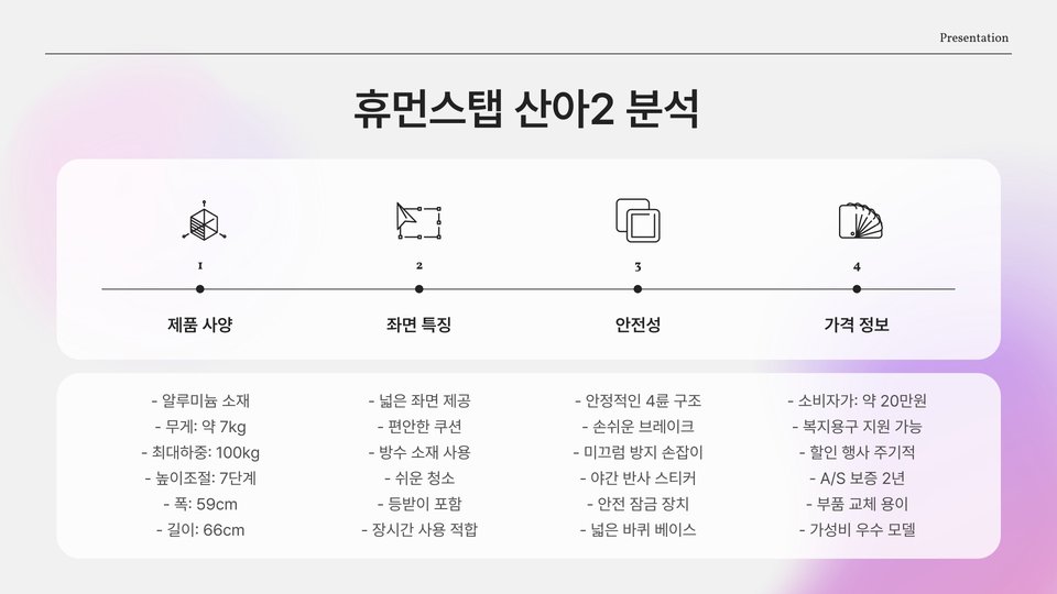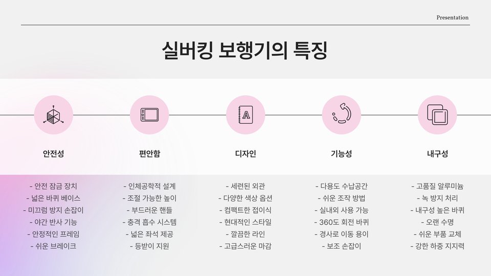 | XX 브랜드 모델 YY | 인체 공학적 디자인, 안전 장치 | 안정성 및 편리성 |