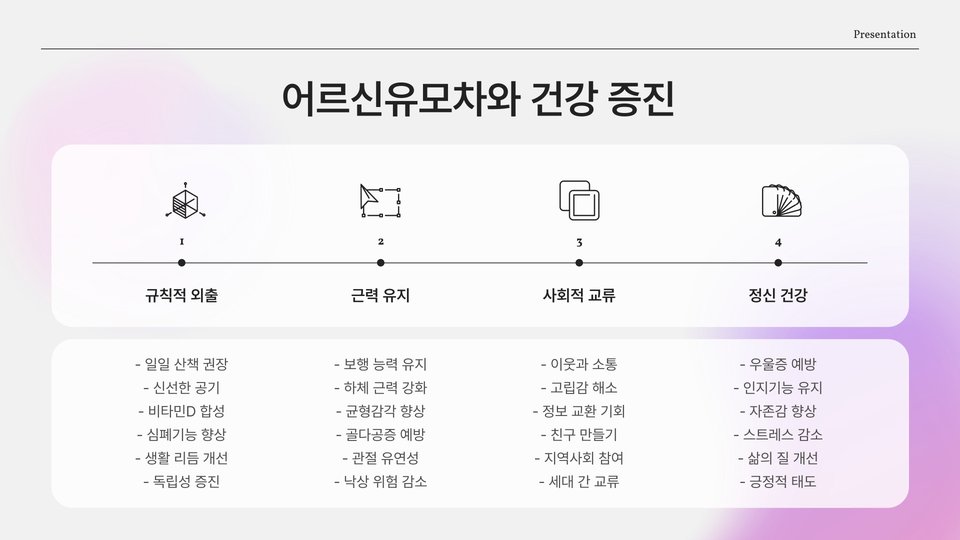 어르신유모차는 노인복지센터나 병원, 그리고 공원 등 다양한 장소에서 활용될 수 있습니다. 예를 들어, 복지센터에서는 어르신들이 소규모 운동이나 그룹 활동에 참여할 때 유모차를 사용하여 편리하게 이동할 수 있습니다. 이뿐만 아니라, 공원에서 산책할 때에도 어르신들이 안전하게 이동할 수 있도록 도와줍니다. 어르신유모차는 단순한 이동 수단을 넘어, 사회적 활동을 촉진하는 중요한 도구임을 잊지 말아야 합니다.