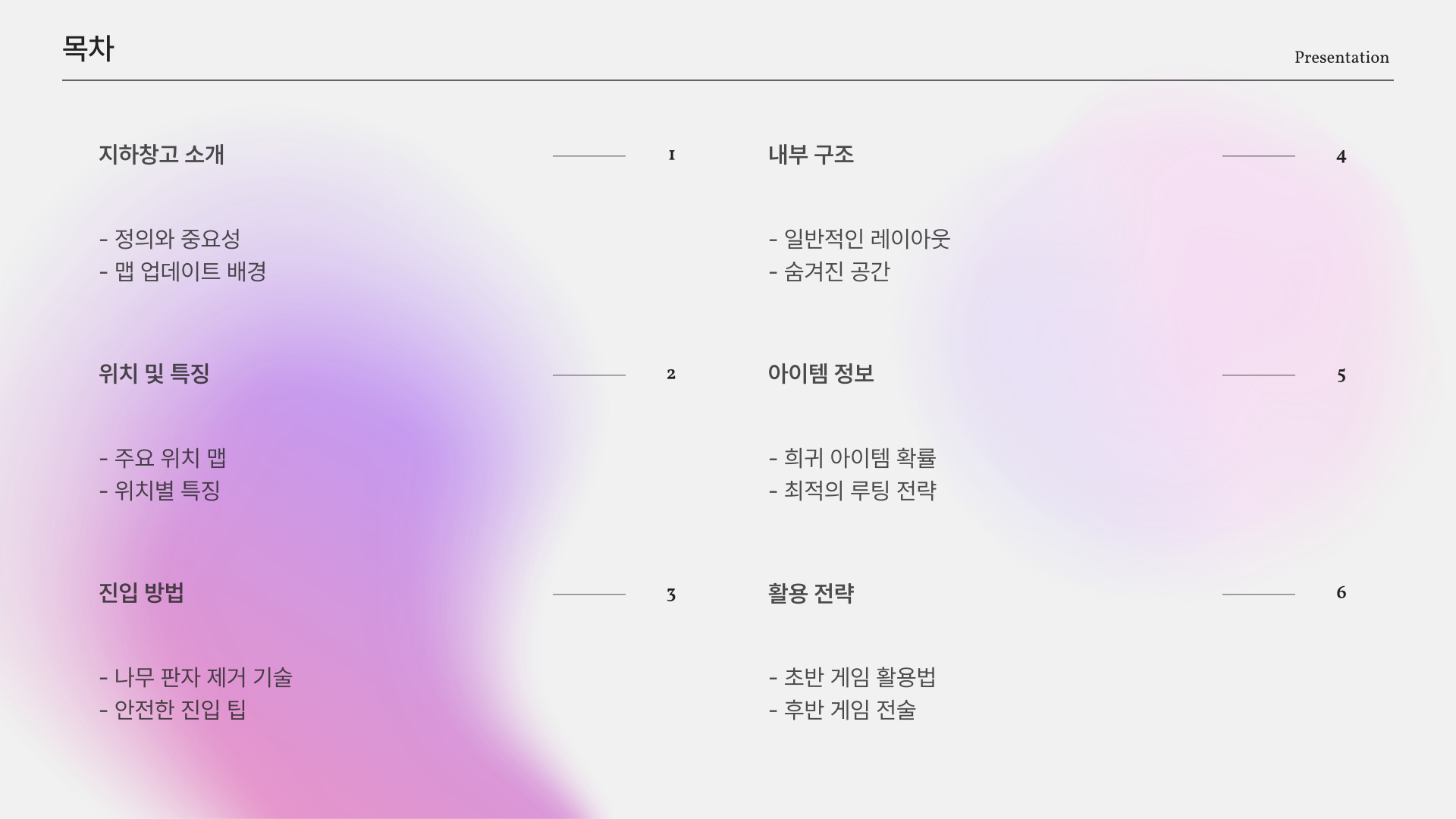 셋째, 팀원과의 소통을 강화하세요. 지하창고에서의 자원 분배는 팀의 생존에 큰 영향을 미치므로, 각자의 역할을 명확히 해야 합니다. 마지막으로, 지하창고를 너무 오래 점유하는 것은 위험할 수 있습니다. 적의 공격을 받을 수 있으므로, 자원을 확보한 후에는 빠르게 이동하는 것이 좋습니다.