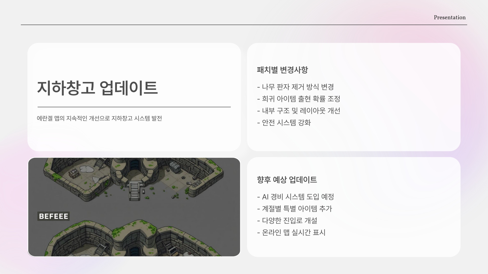 마지막으로, 지하창고의 정보를 미리 숙지하고, 이를 바탕으로 상황에 맞는 전략을 세우는 것이 중요합니다. 이 공간을 잘 활용하면 적보다 유리한 고지를 점할 수 있으며, 승리의 확률을 높일 수 있습니다.