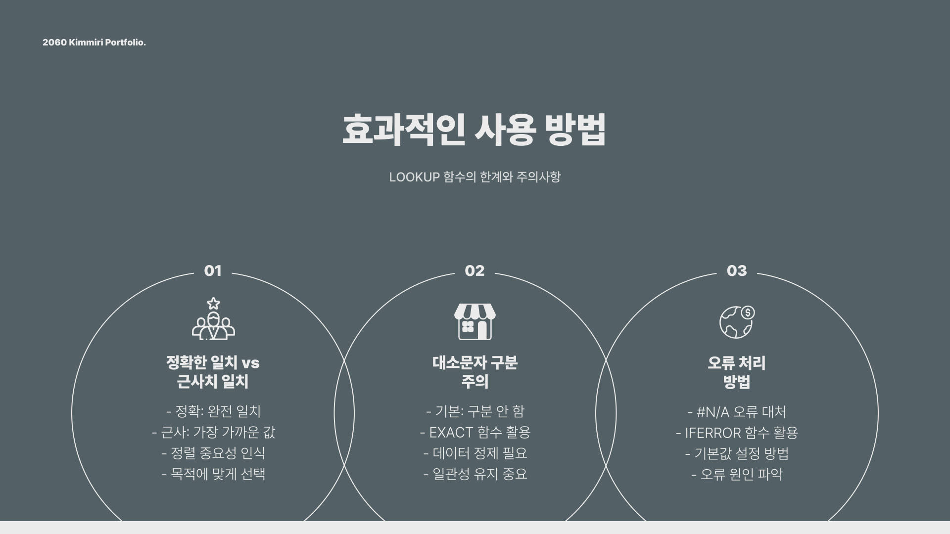 엑셀의 lookup 함수를 사용할 때 몇 가지 주의해야 할 사항들이 있습니다. 특히, 데이터가 정렬되어 있지 않다면 함수의 정확도가 떨어질 수 있다는 점을 명심해야 합니다. 정렬되지 않은 데이터에서의 사용은 큰 실수를 초래할 수 있다는 점을 주의해야 하며, 항상 데이터의 형식을 점검하는 것이 필수입니다.