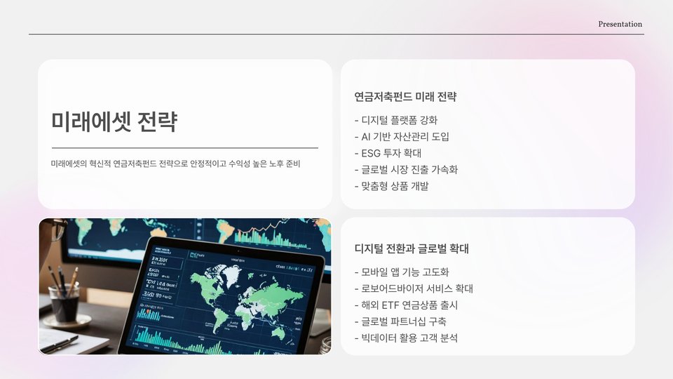 - 미래에셋 연금저축펀드는 안정성과 신뢰성을 제공합니다.