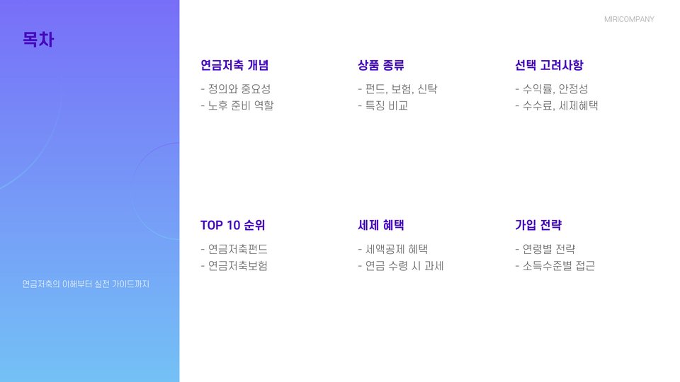 - 연금저축 상품은 노후 대비에 필수적.