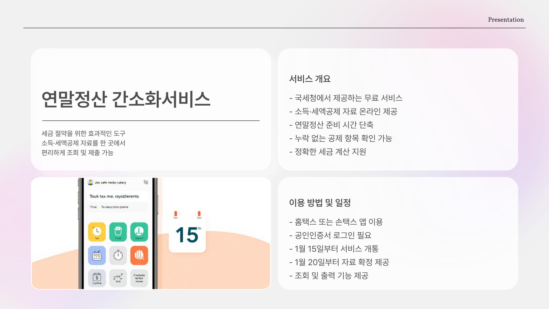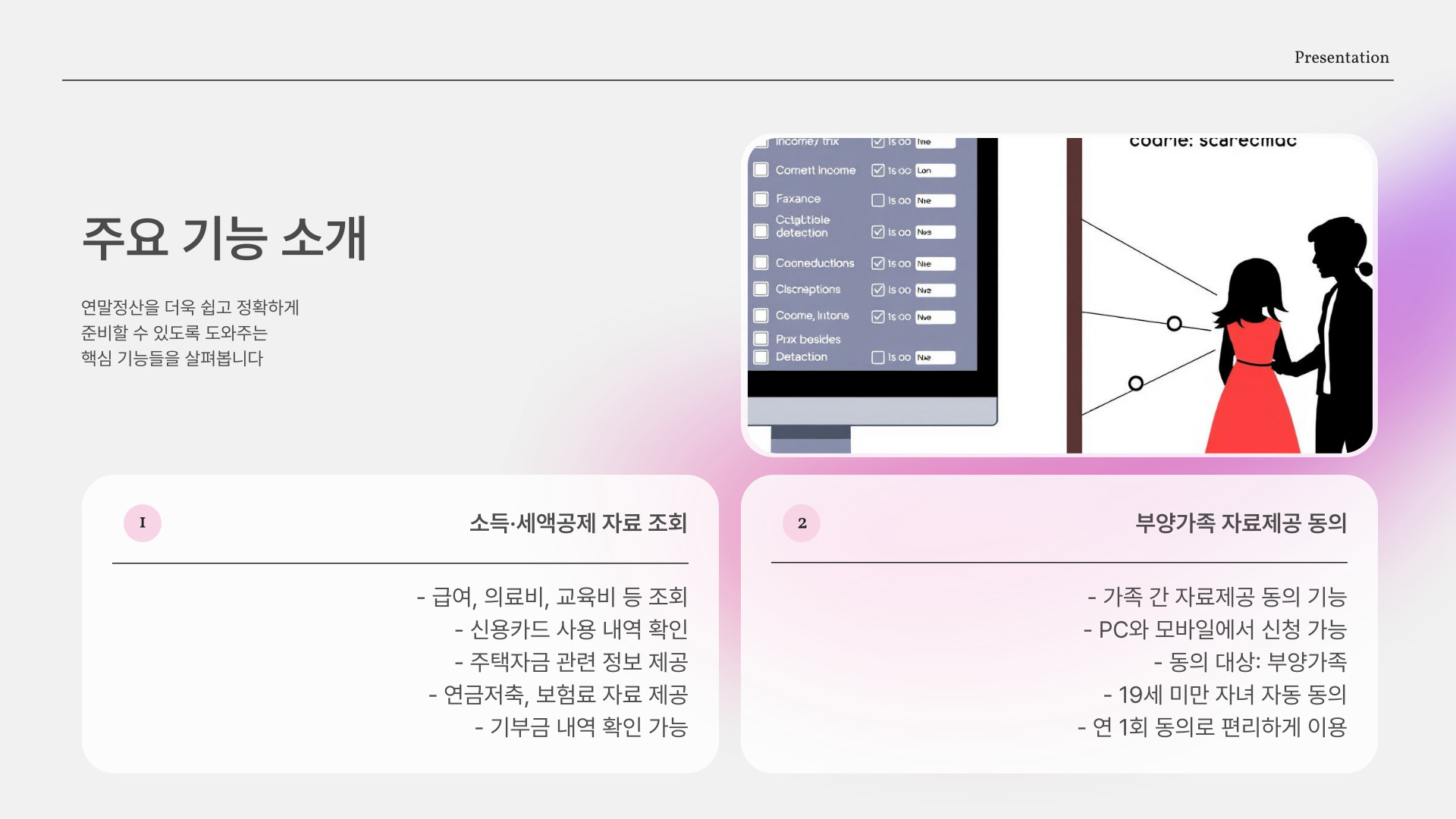 - 연말정산 간소화서비스는 소득세 정산의 편리함을 제공합니다.