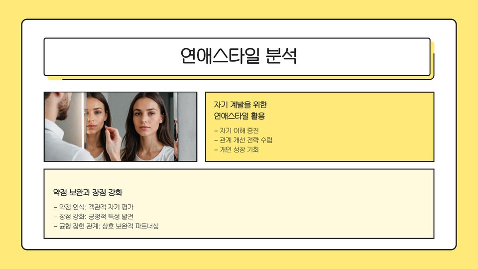 - 자신의 연애스타일을 이해하는 것이 중요하다.