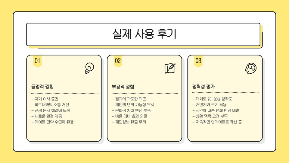 - 사용자 후기들은 연애스타일의 중요성을 강조한다.