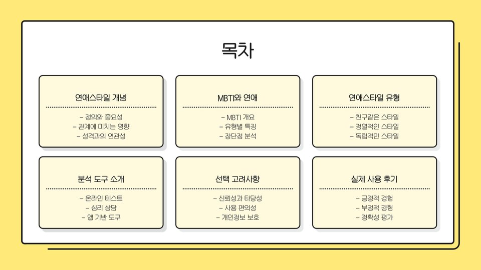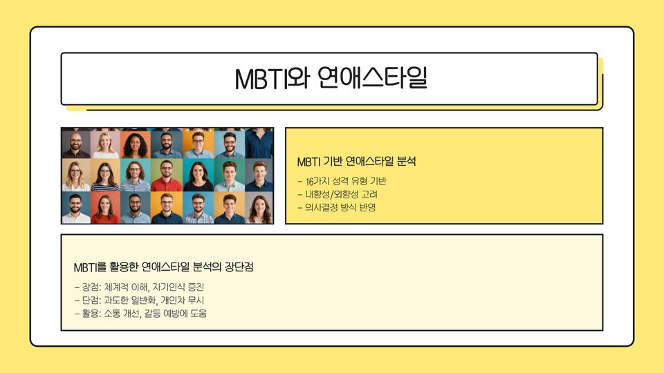 | 연애스타일 | 특징 | 장점 | 단점 |