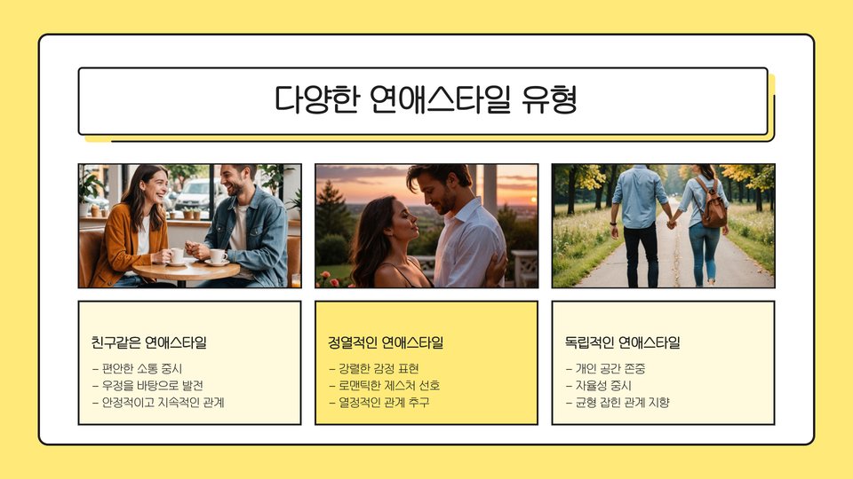 Tags: 연애스타일, 연애, 관계, 감정적 요구, 사용자 후기, 헌신, 자유, 독립성, 스타일 비교, 연애 가이드