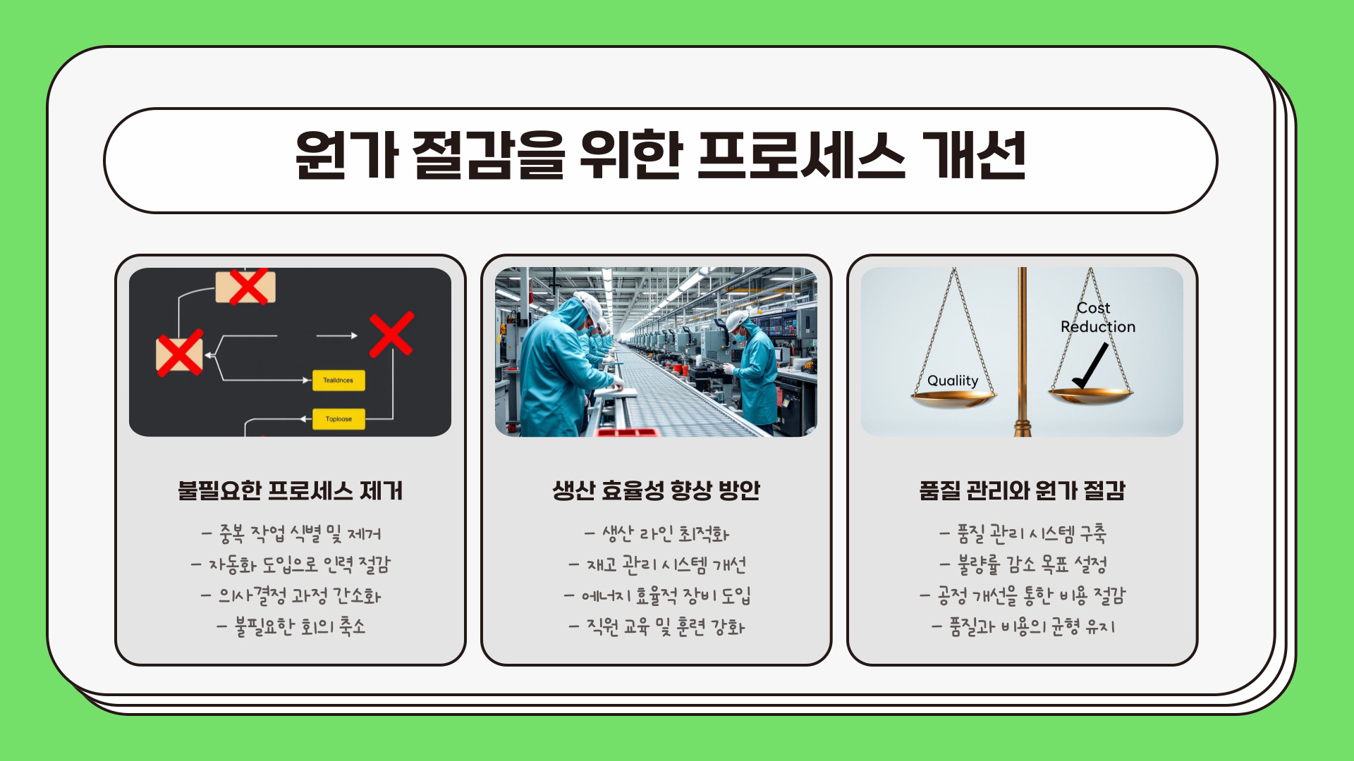 - 기술의 활용이 원가 관리에 큰 도움을 줍니다.
