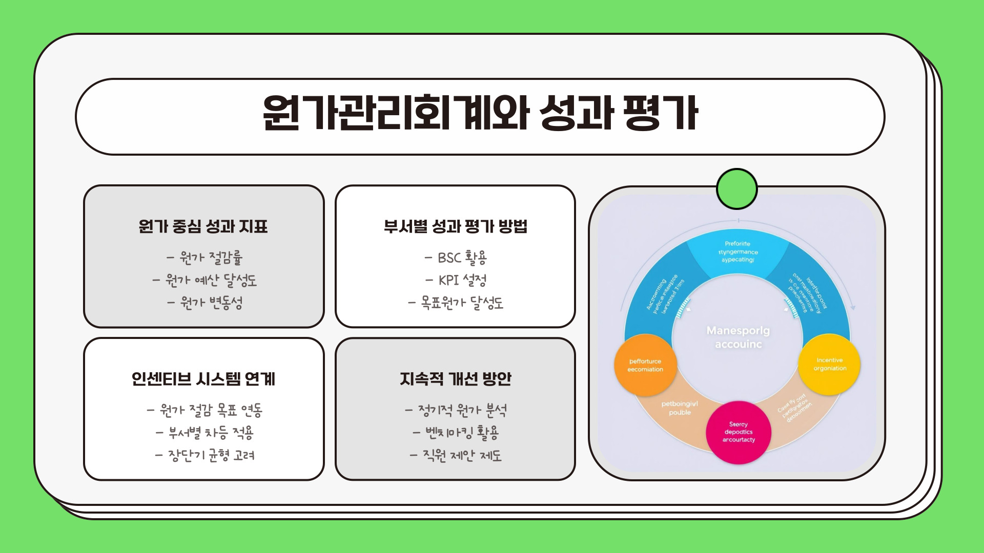 • 원가관리회계의 핵심 목표는 비용 관리와 수익성 개선입니다.