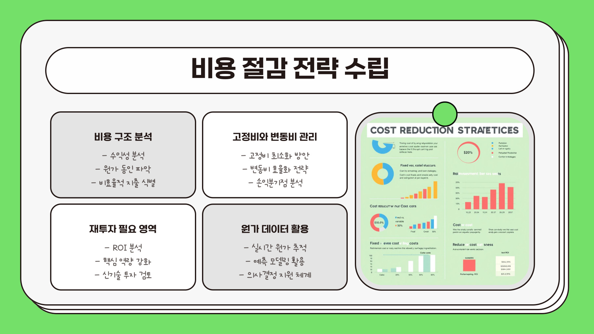 - 비용 구조 분석을 통해 절감 가능한 부분을 확인해야 합니다.