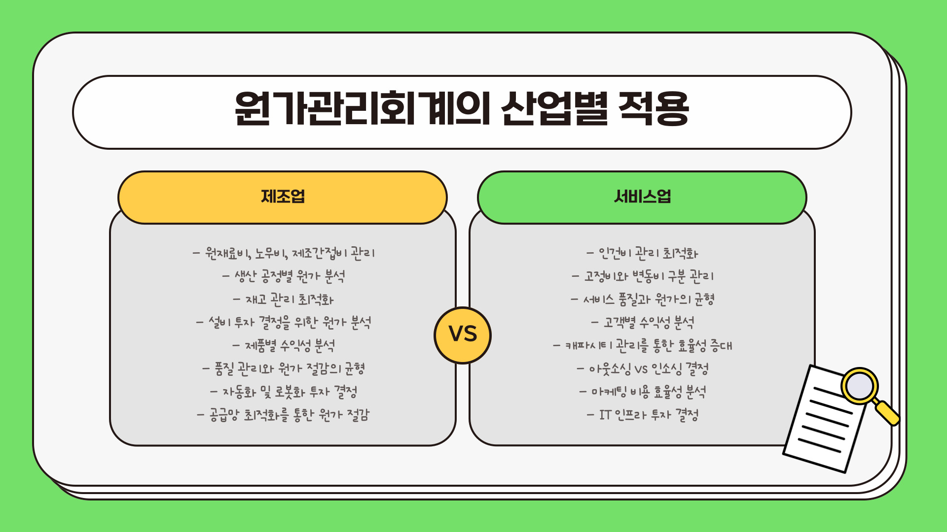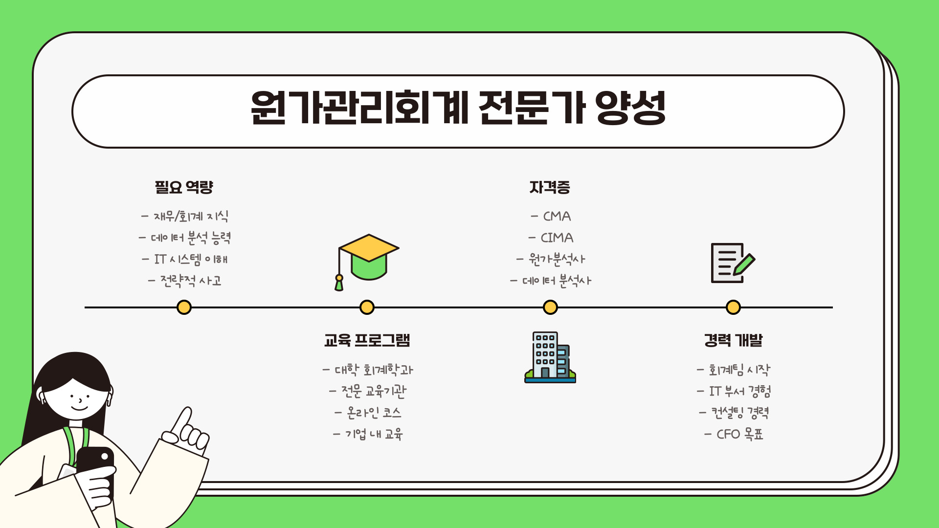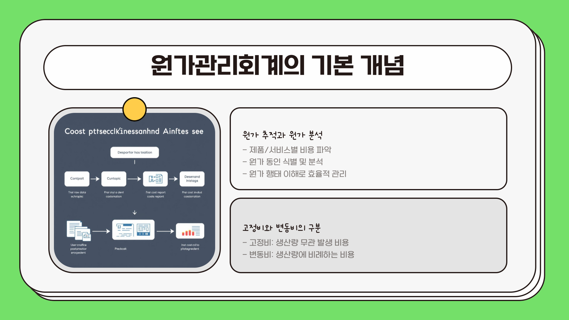| 원가관리회계 정의 | 비용 추적 및 분석을 통해 경영 결정을 지원하는 시스템 |