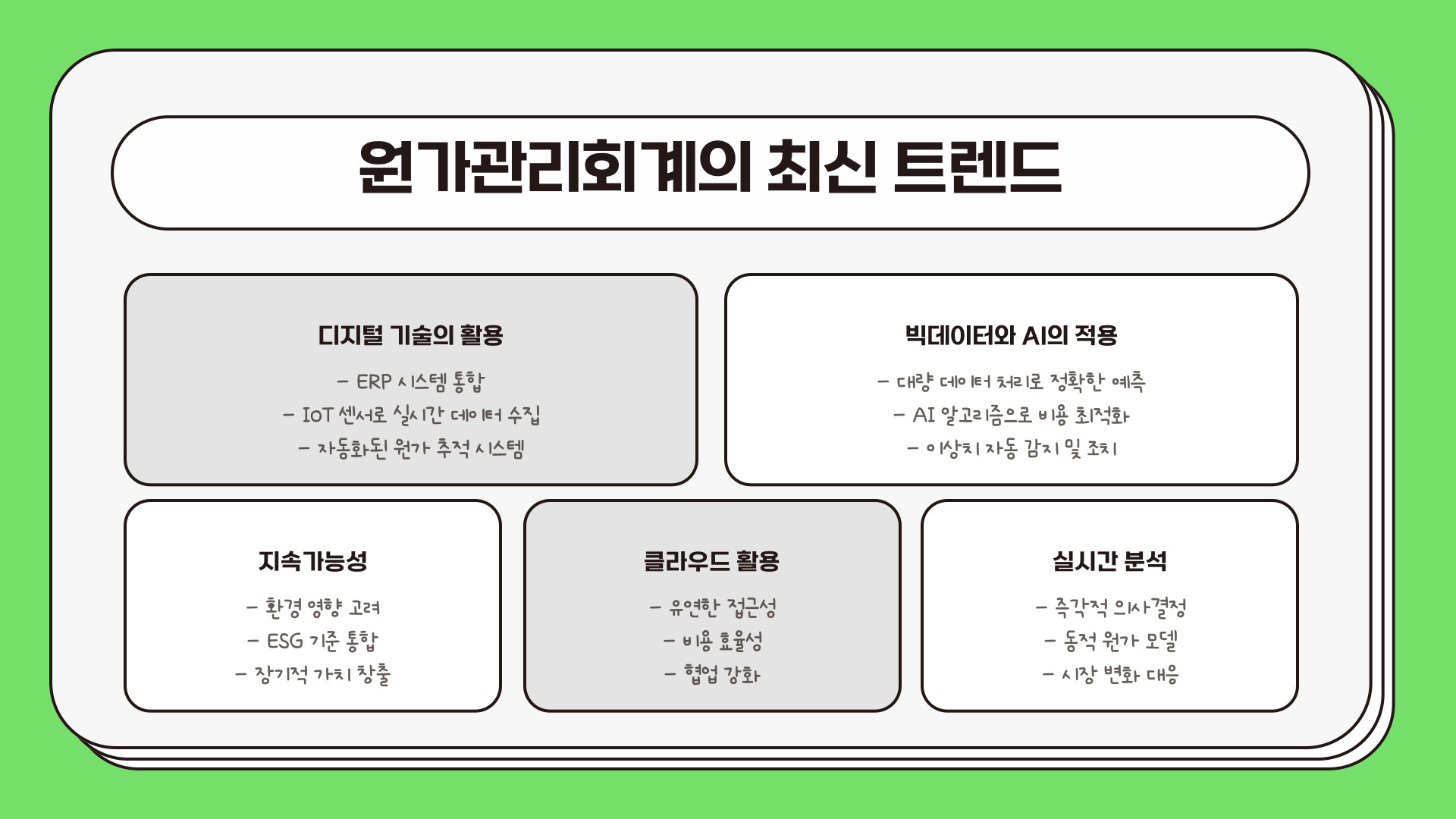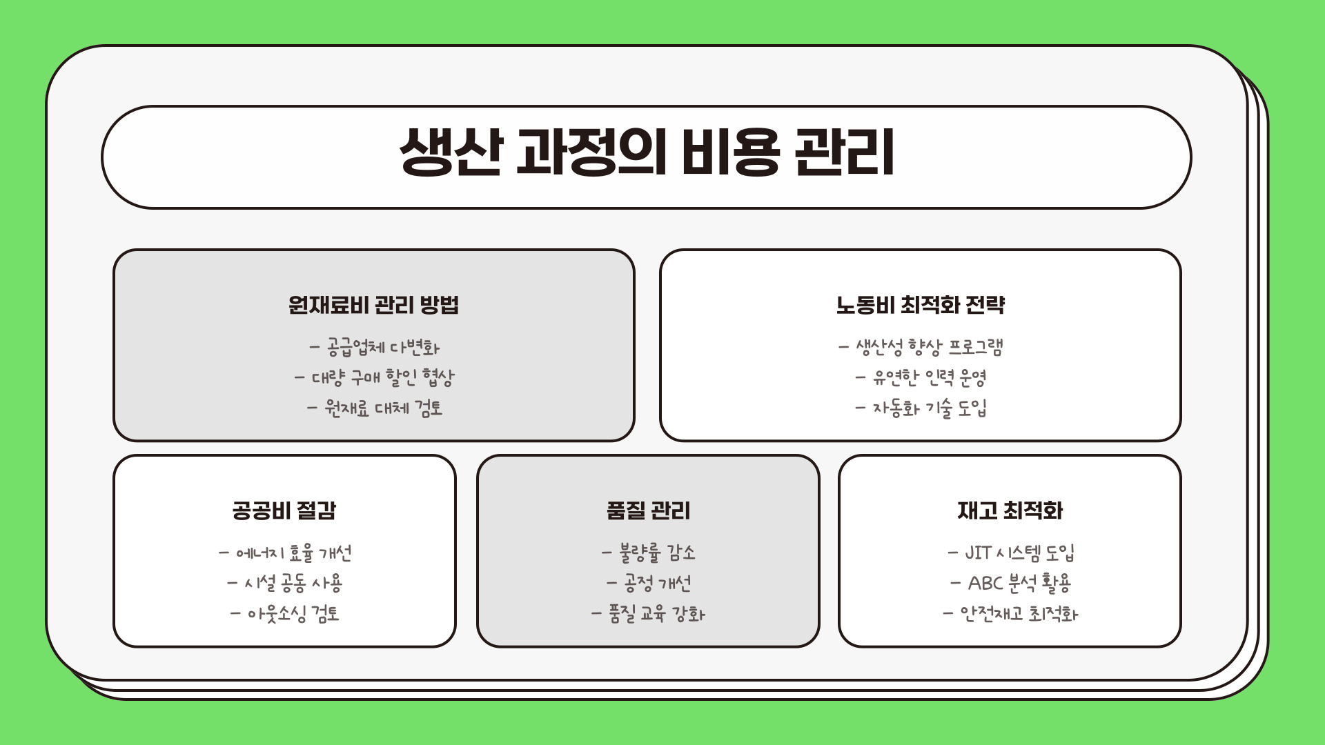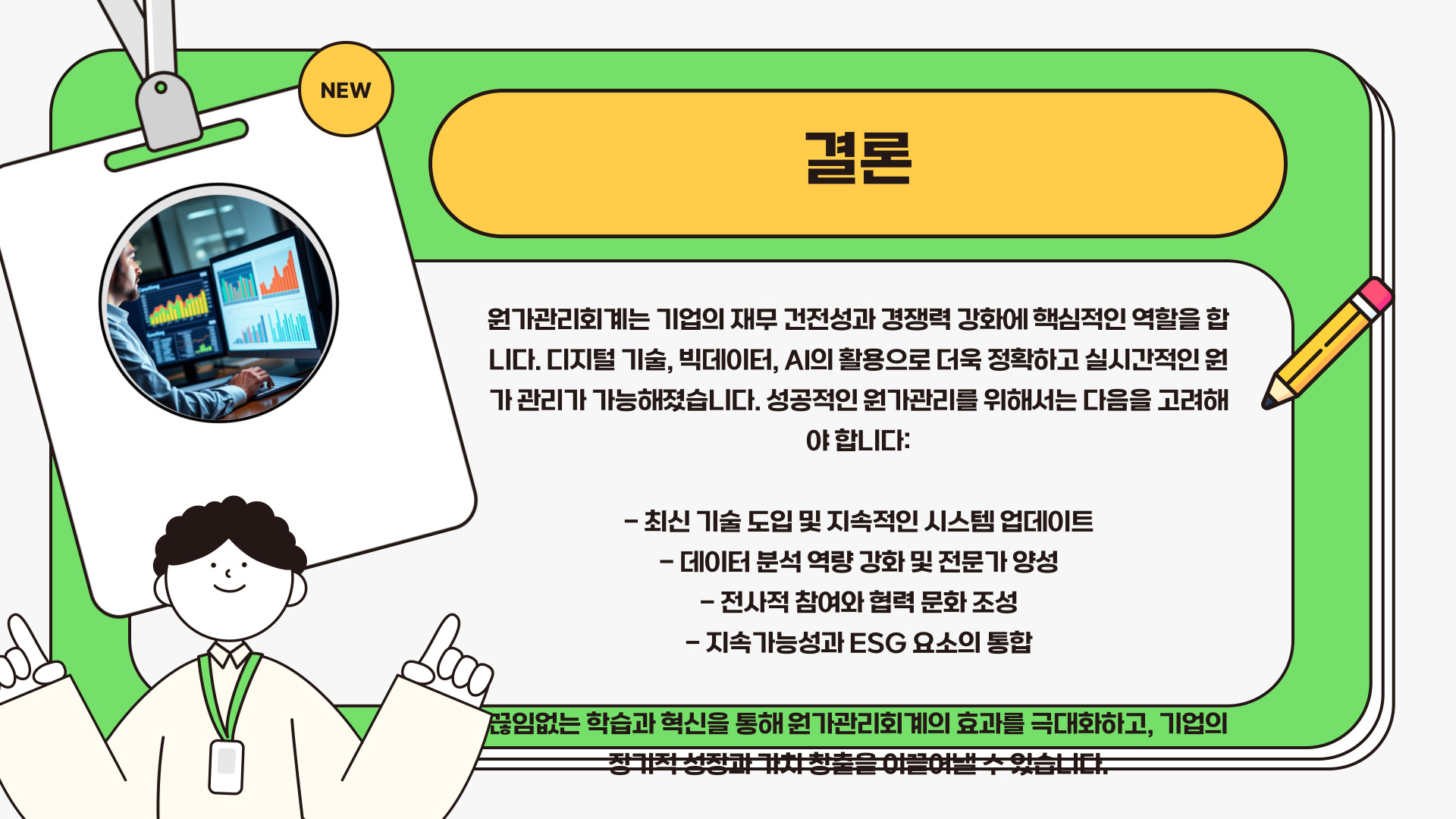 - 기술의 활용이 원가 관리에 큰 도움을 줍니다.