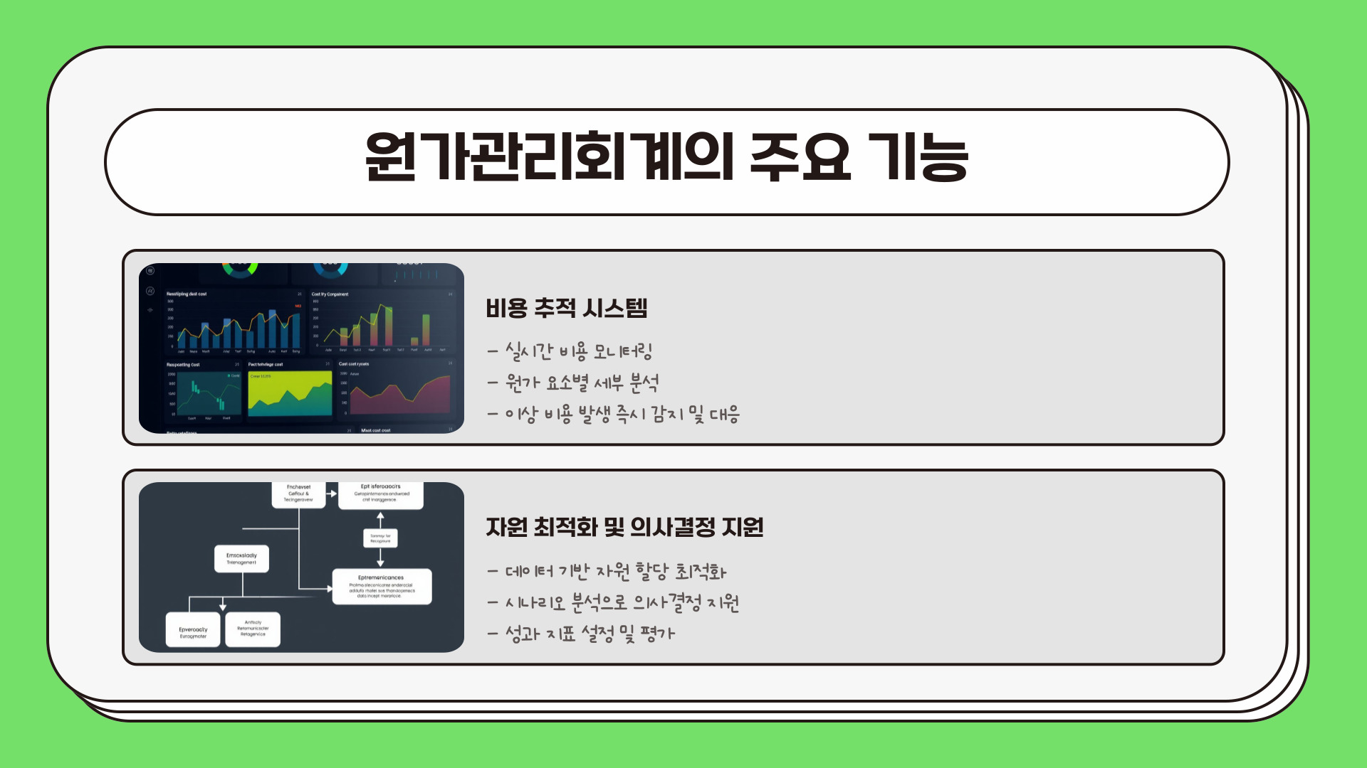 - 원가관리회계의 핵심 목표는 비용 관리와 수익성 개선입니다.